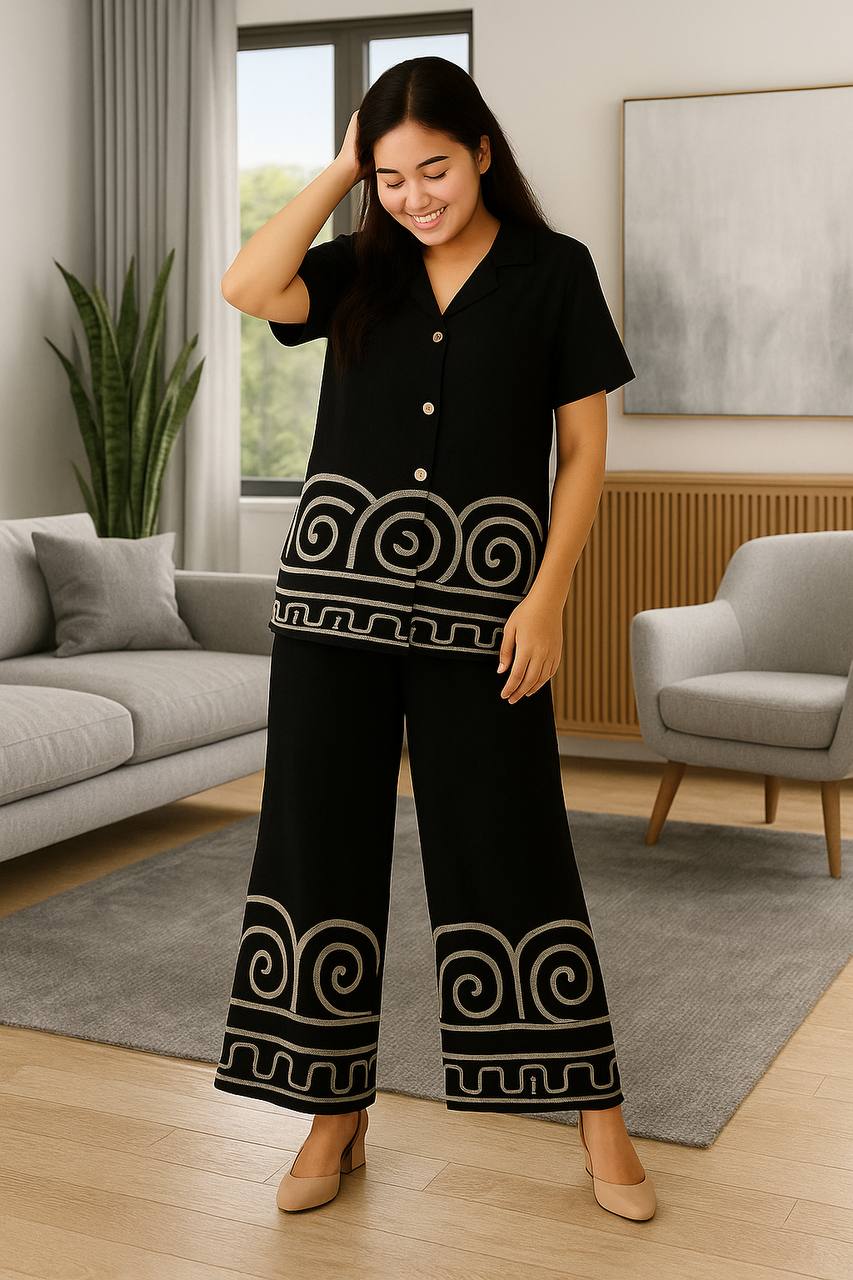 Step out in style with this Black Embroidery Co-ord Set crafted from slub cotton fabric for a comfortable yet elegant look. Designed for festive occasions, parties, and casual gatherings, this set is a perfect blend of style and comfort.