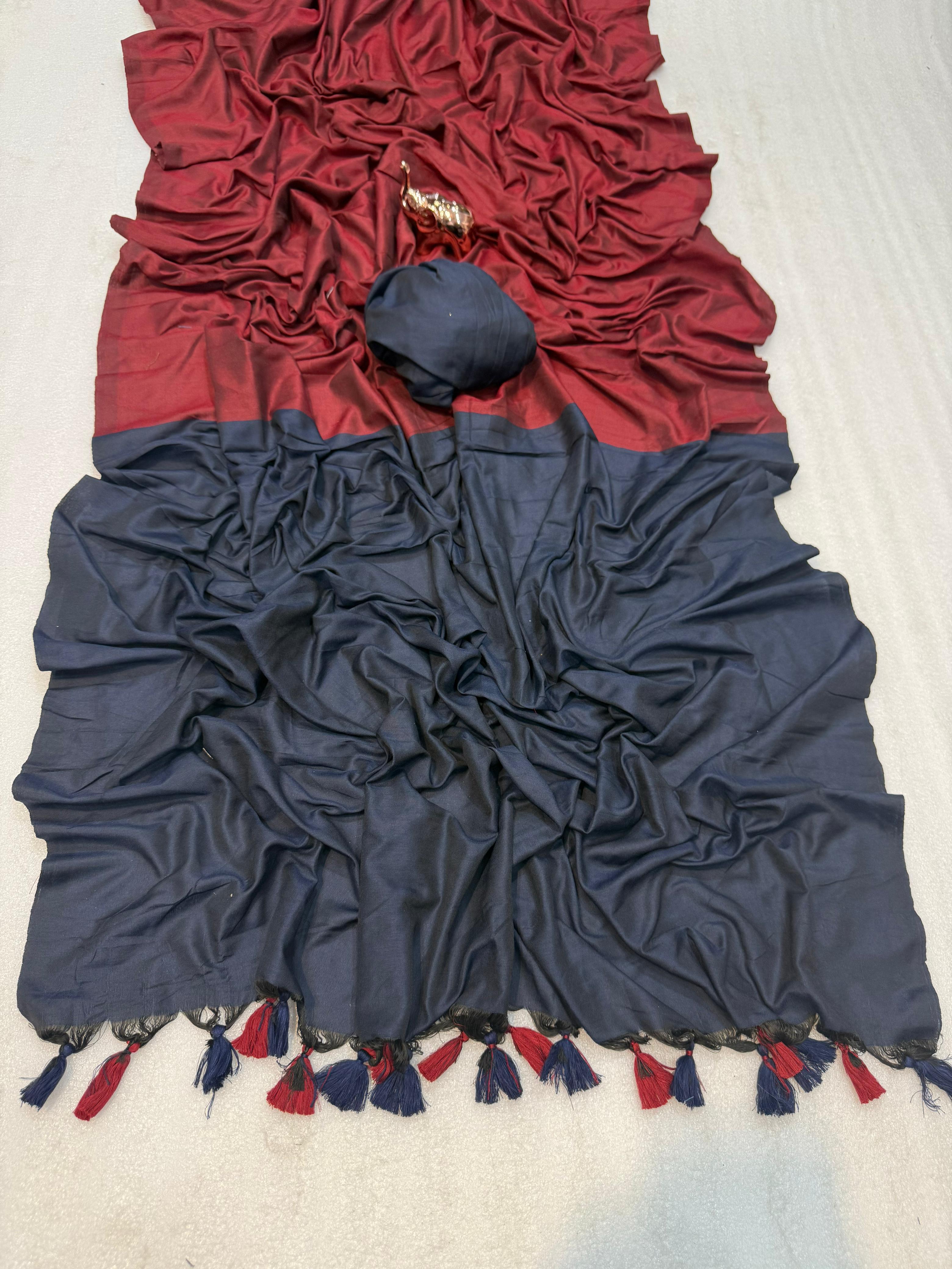 Mal Cotton Saree with Contrast Blouse & Pallu | Beautiful Latkans | Premium Quality