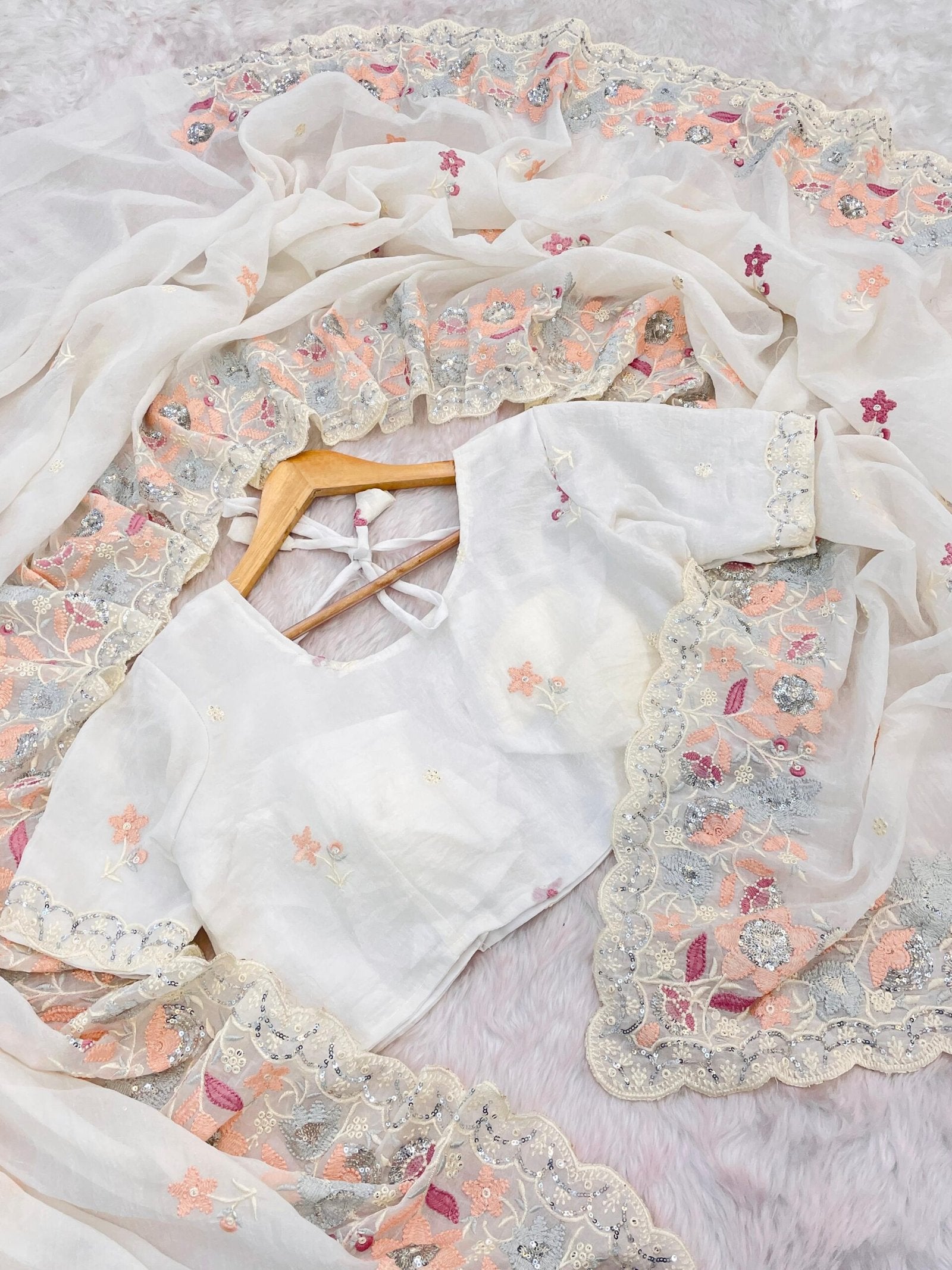 •     Blouse Work: Fully Embroidered