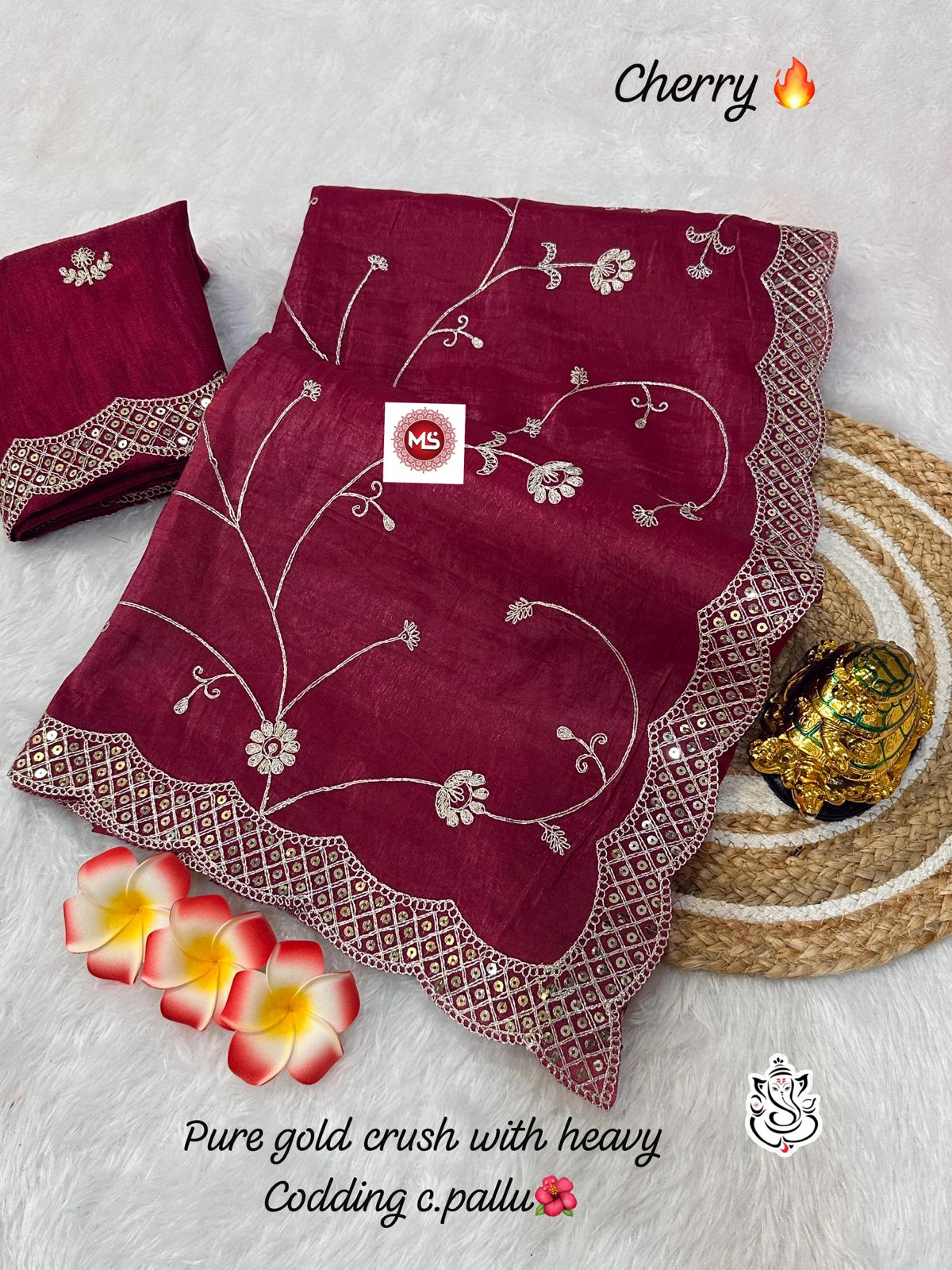 Perfect for festive occasions, receptions, or weddings, this saree comes paired with a heavy mono work blouse (unstitched) that complements the saree perfectly. A flawless blend of tradition and glamor — at an unbeatable price.