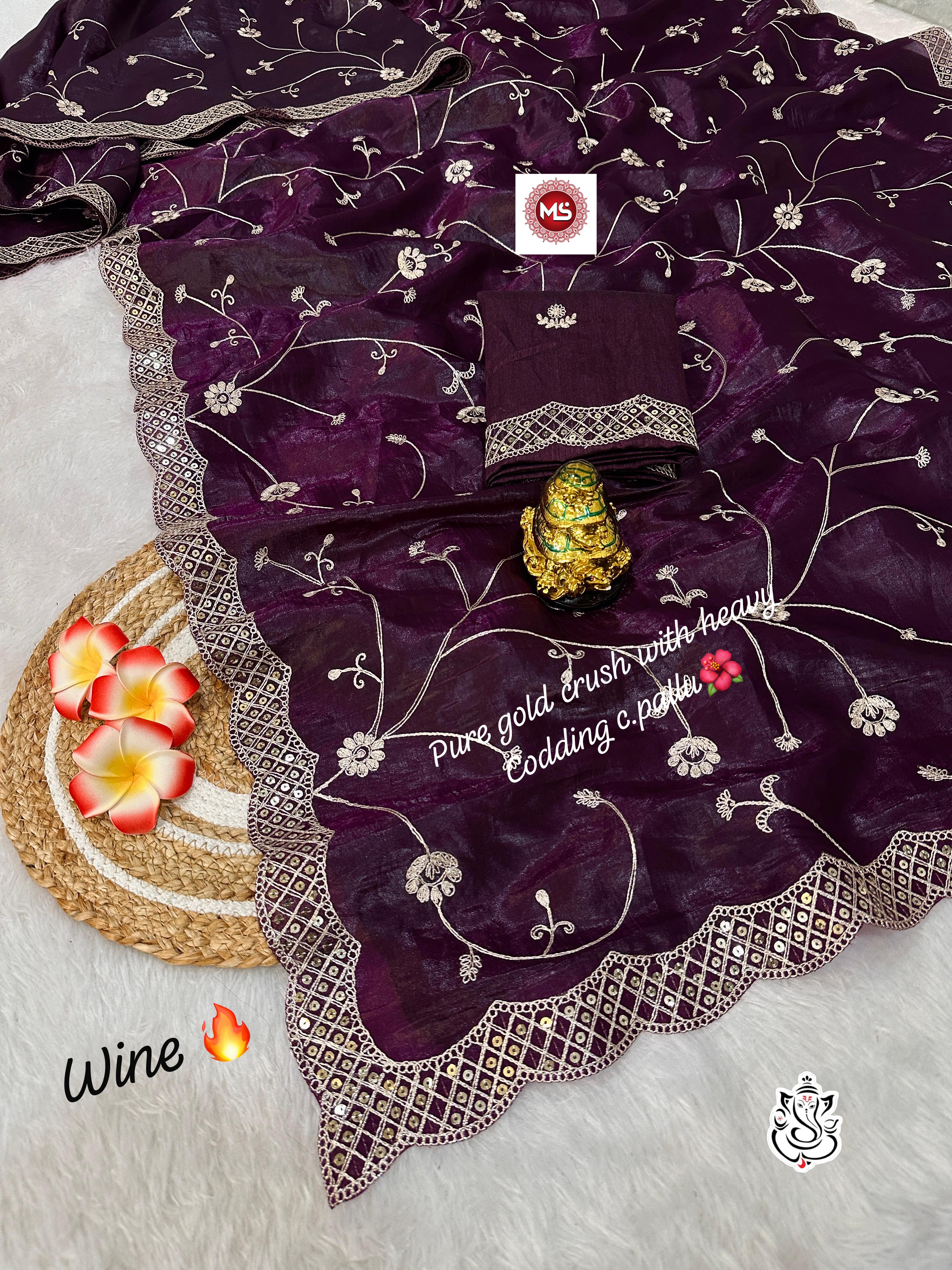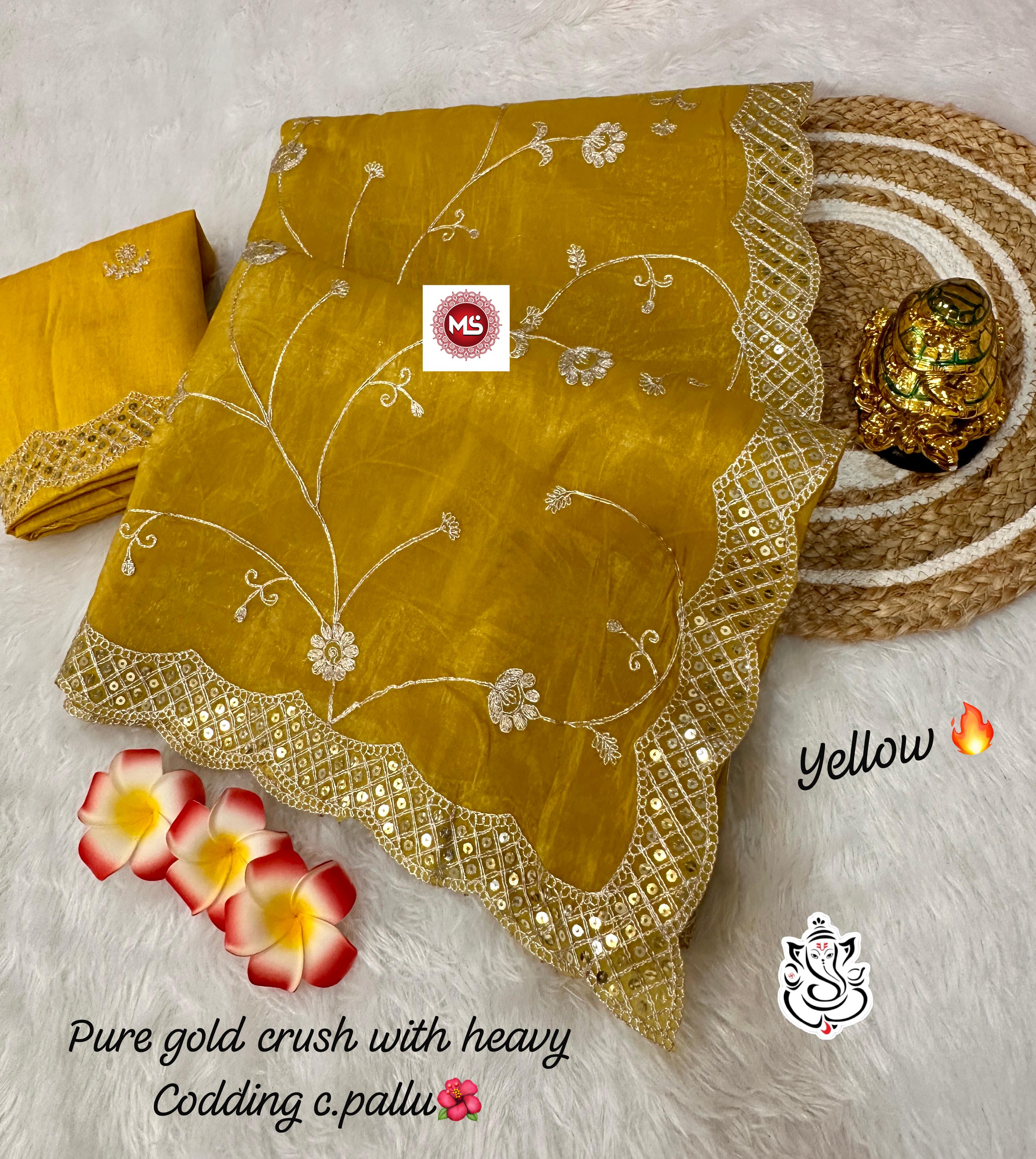 Exclusive Gold Crush Saree with Pitta Codding Zaal & Sequins Work