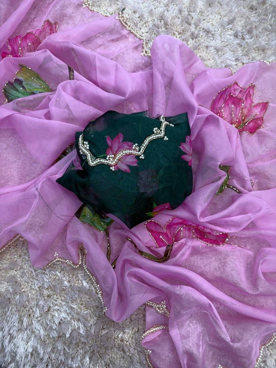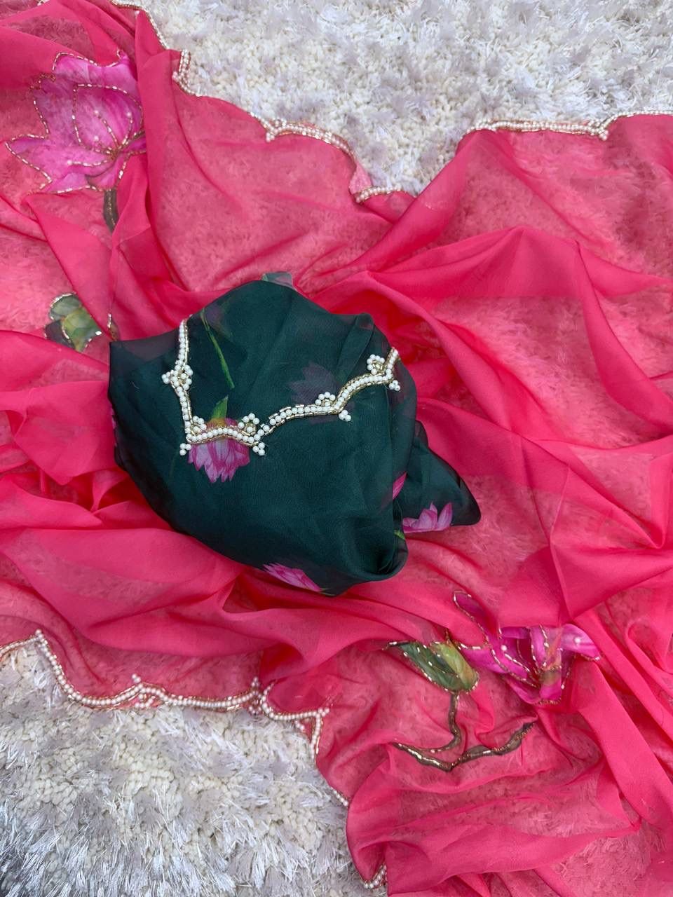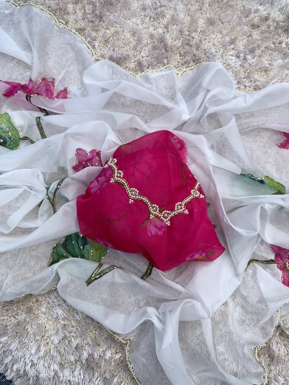 Nice Sarees – Pure Soft Tabby Orgenza with Digital Print & Khatli Work