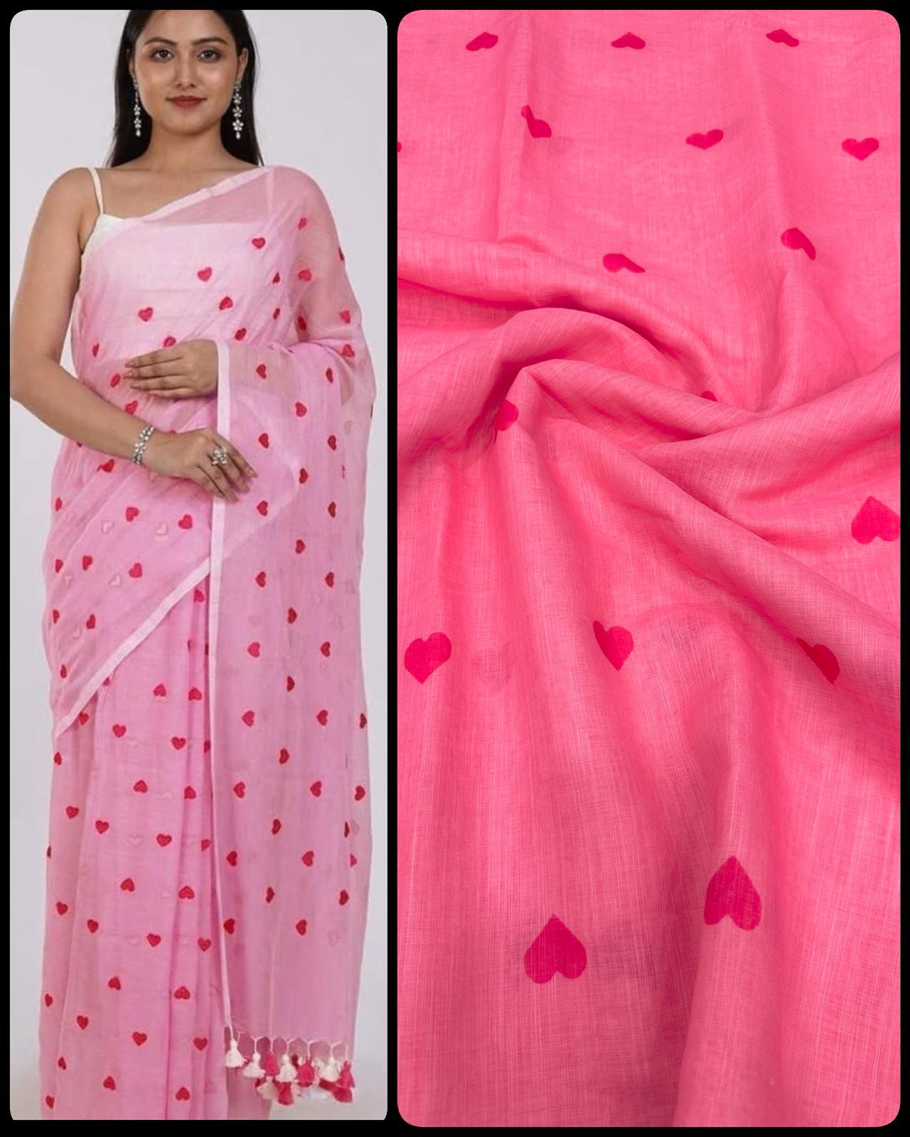 Experience the elegance of premium mull cotton with this all-over Dil pattern saree. Crafted from 100-count soft cotton, it offers ultimate comfort and breathability. Comes with a matching blouse for a complete look. Ideal for casual, office, or festive wear, this saree combines style, softness, and premium quality.