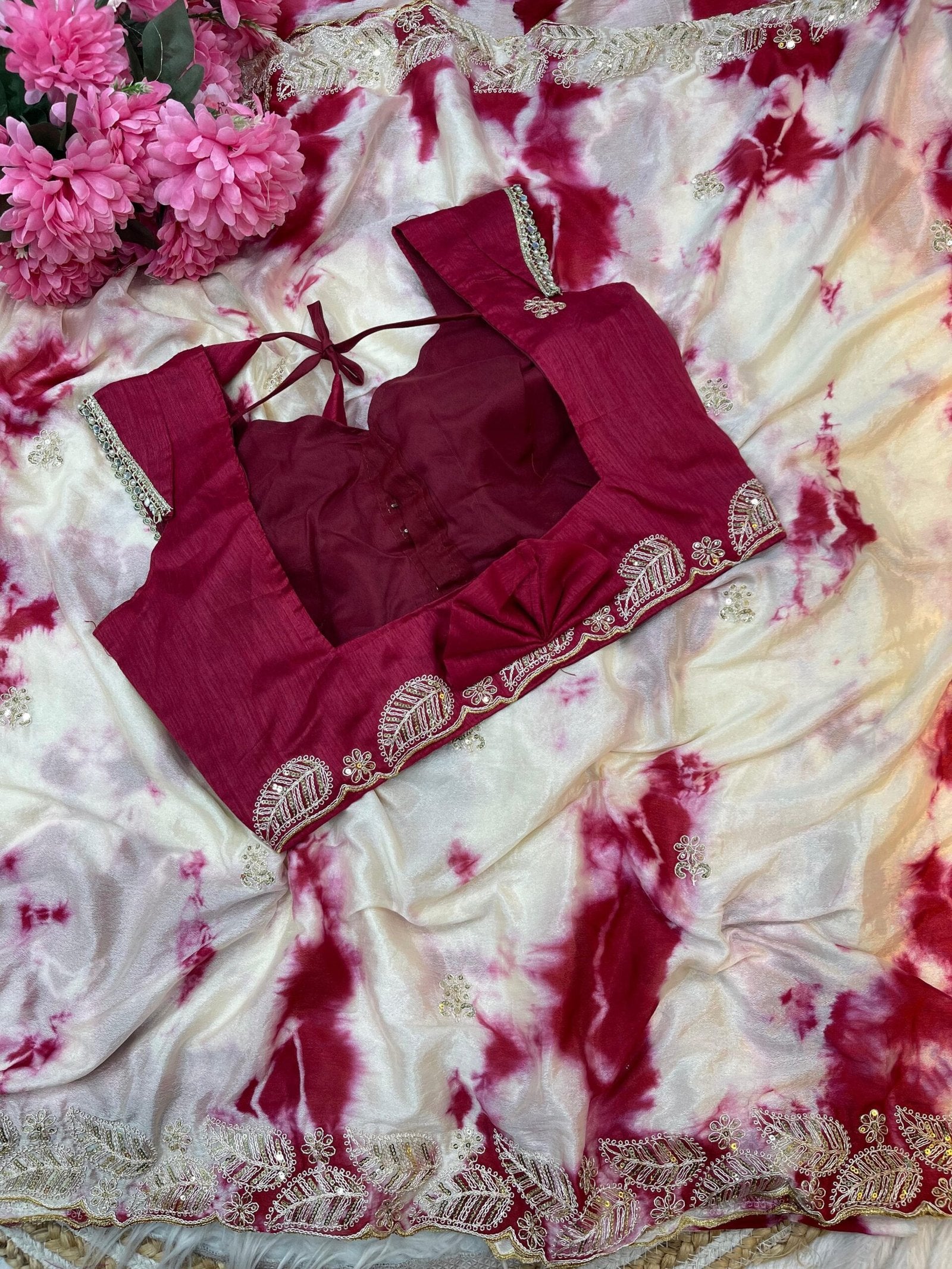 •     Saree Fabric: Pure Chinon Prism Dyble