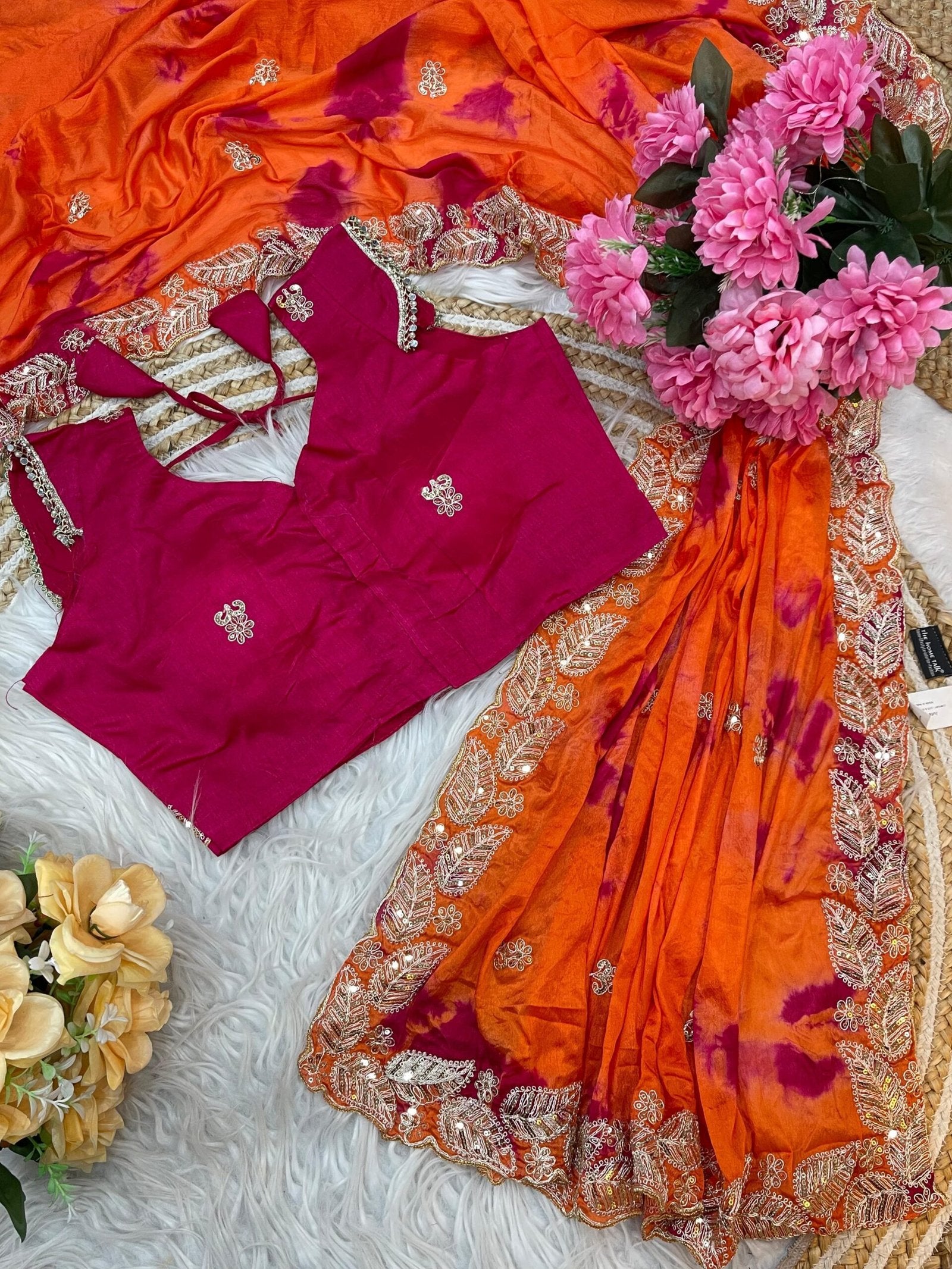 Elegant Pure Chinon Prism Dyble Saree with Embroidery & 3mm Sequins - Orange image