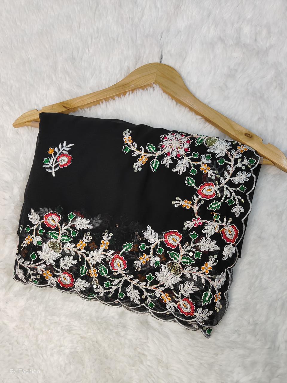 Sargam Sarees – Faux Georgette with Multicolour Thread & Sequins Work