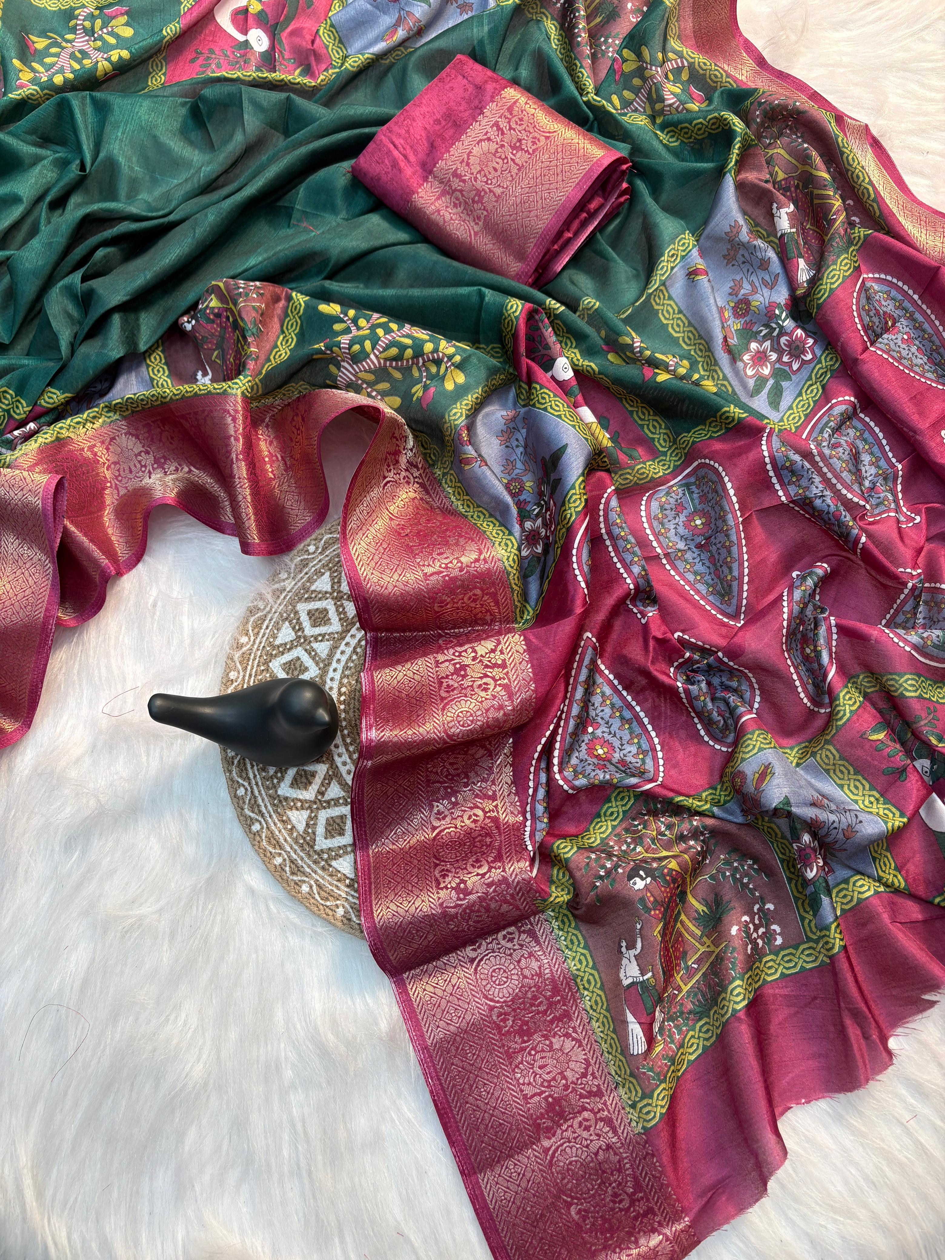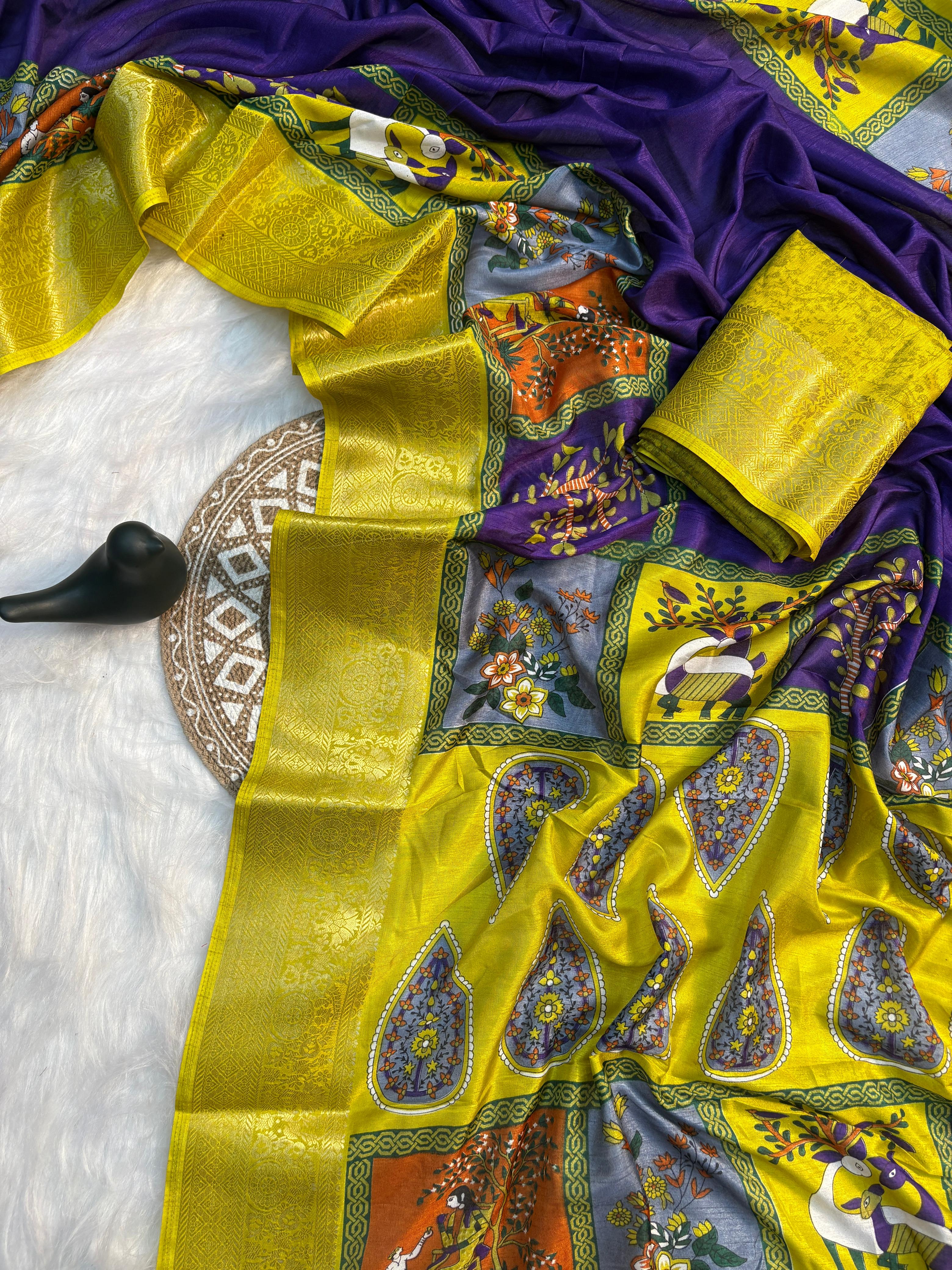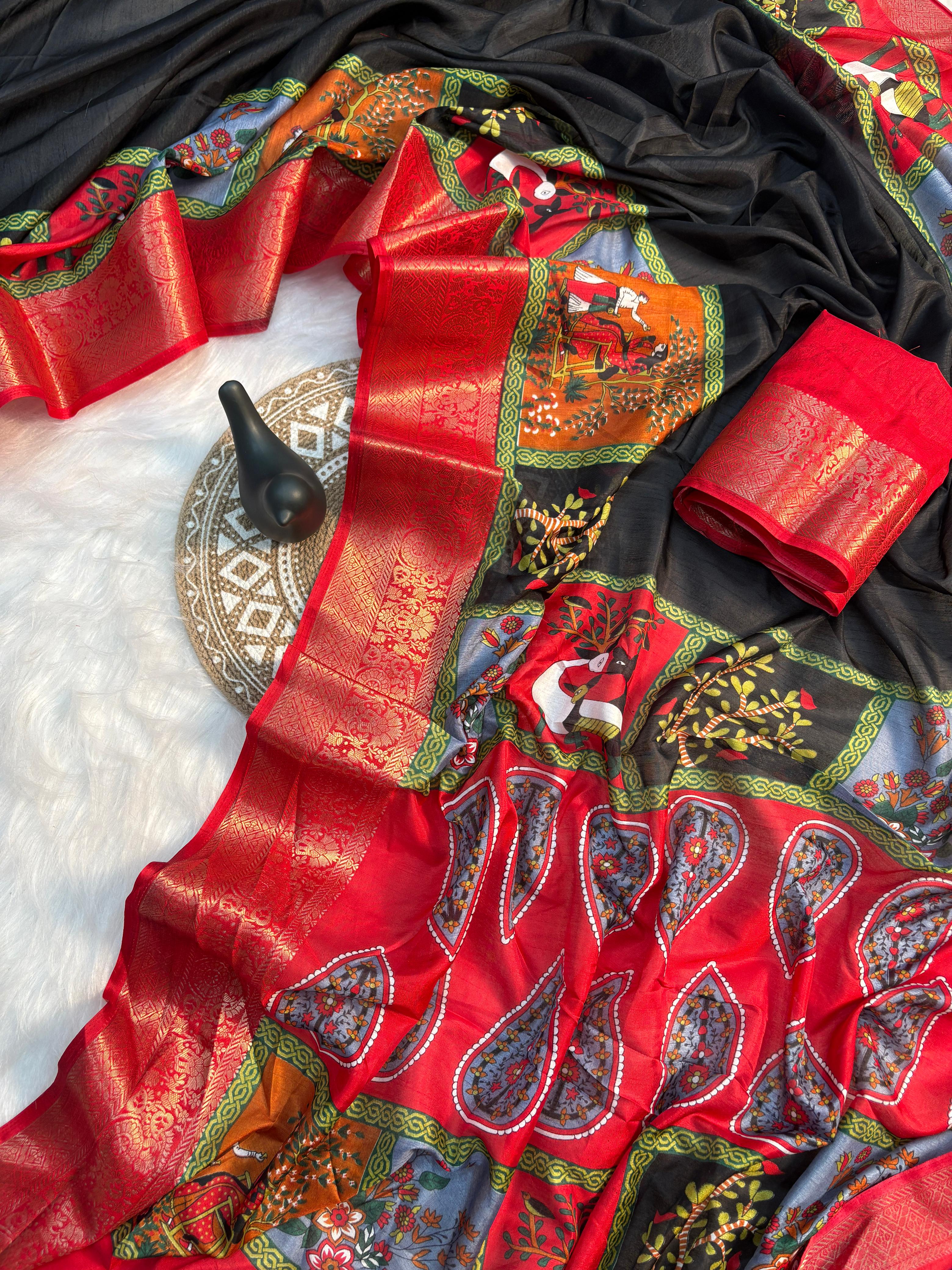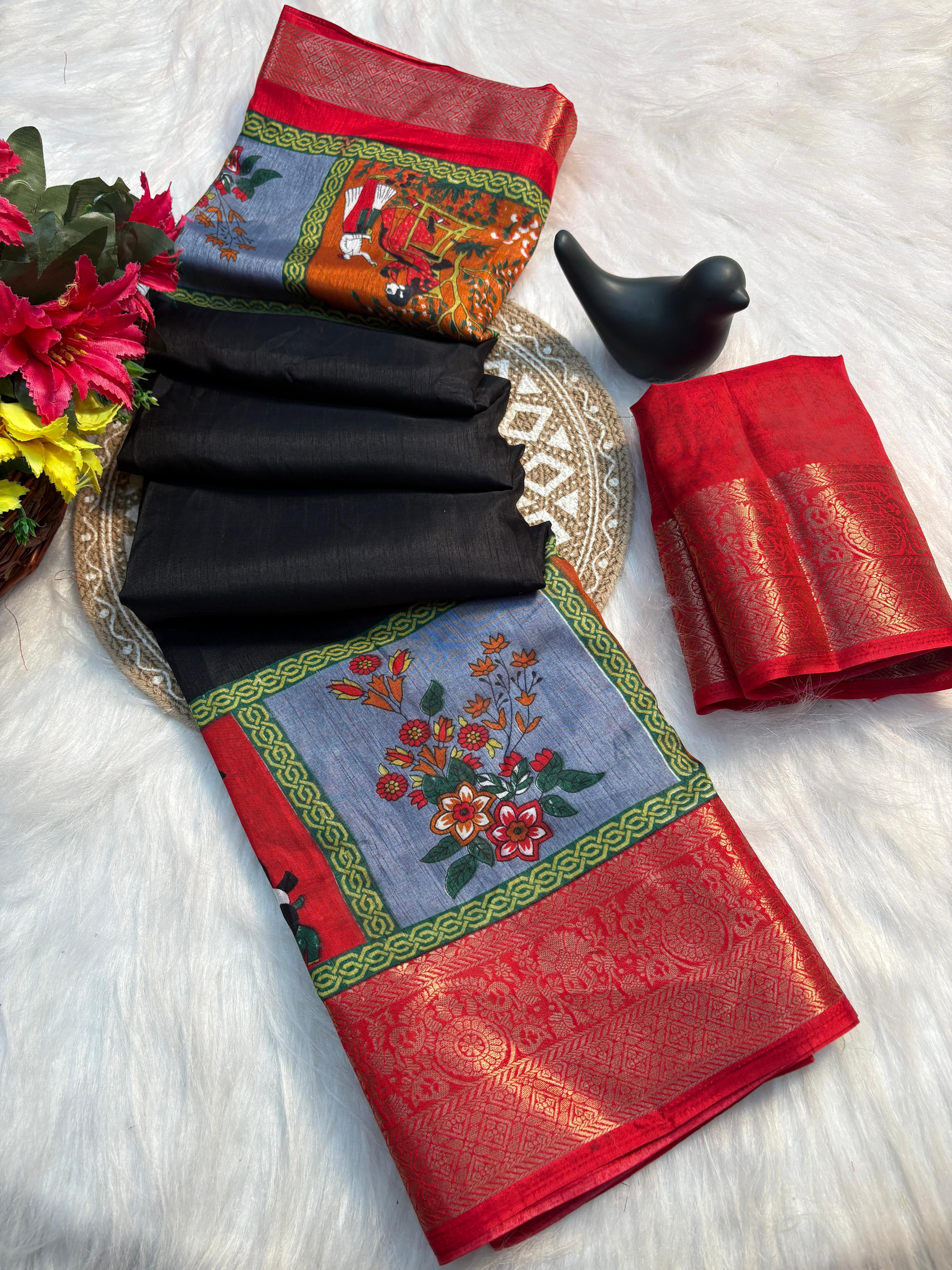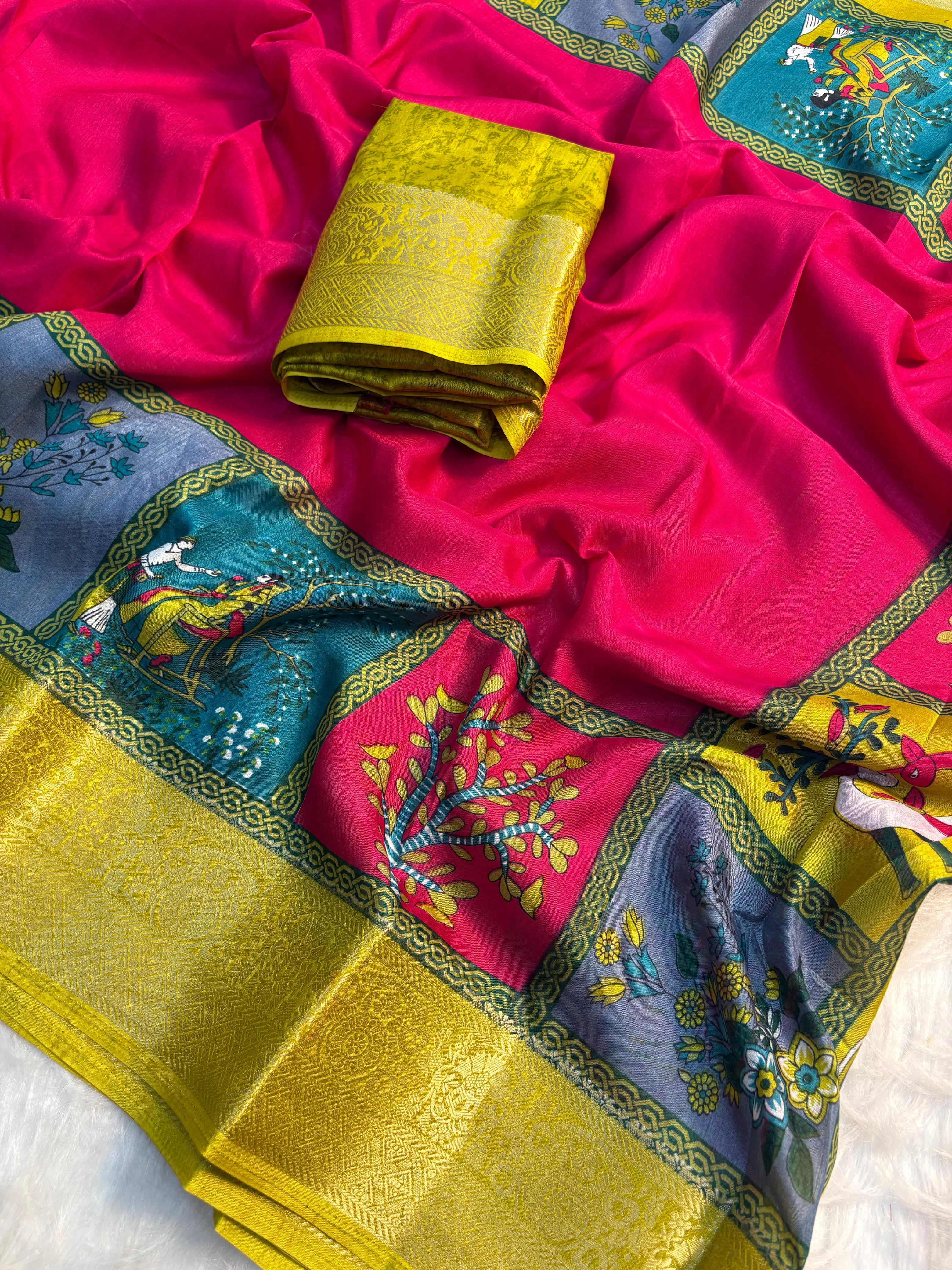 Elegant Dola Silk Saree with Jacquard Border & Matching Blouse – Super Soft Fabric