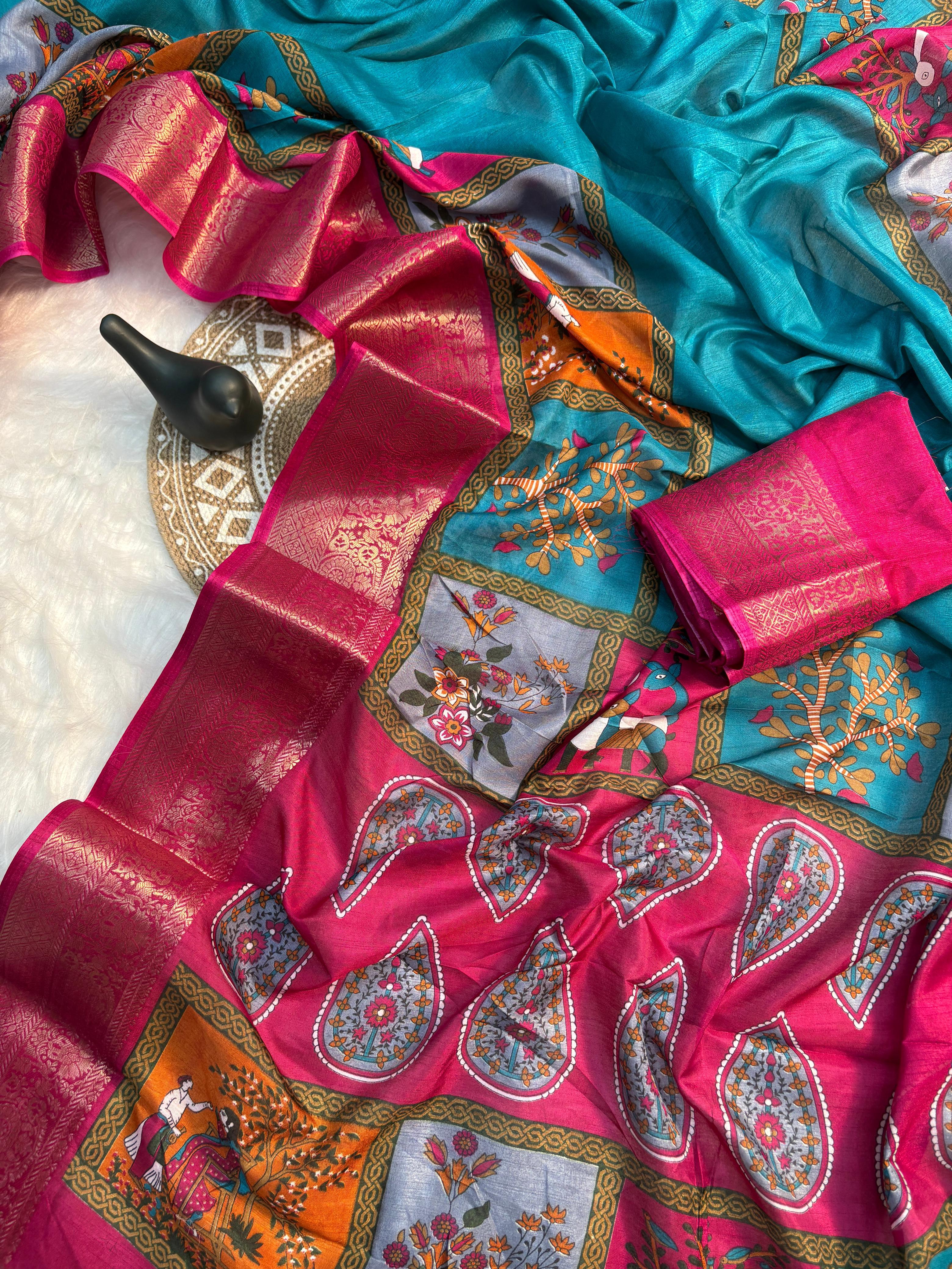 •     Blouse Fabric: Dola Silk with Jacquard Border (Unstitched)