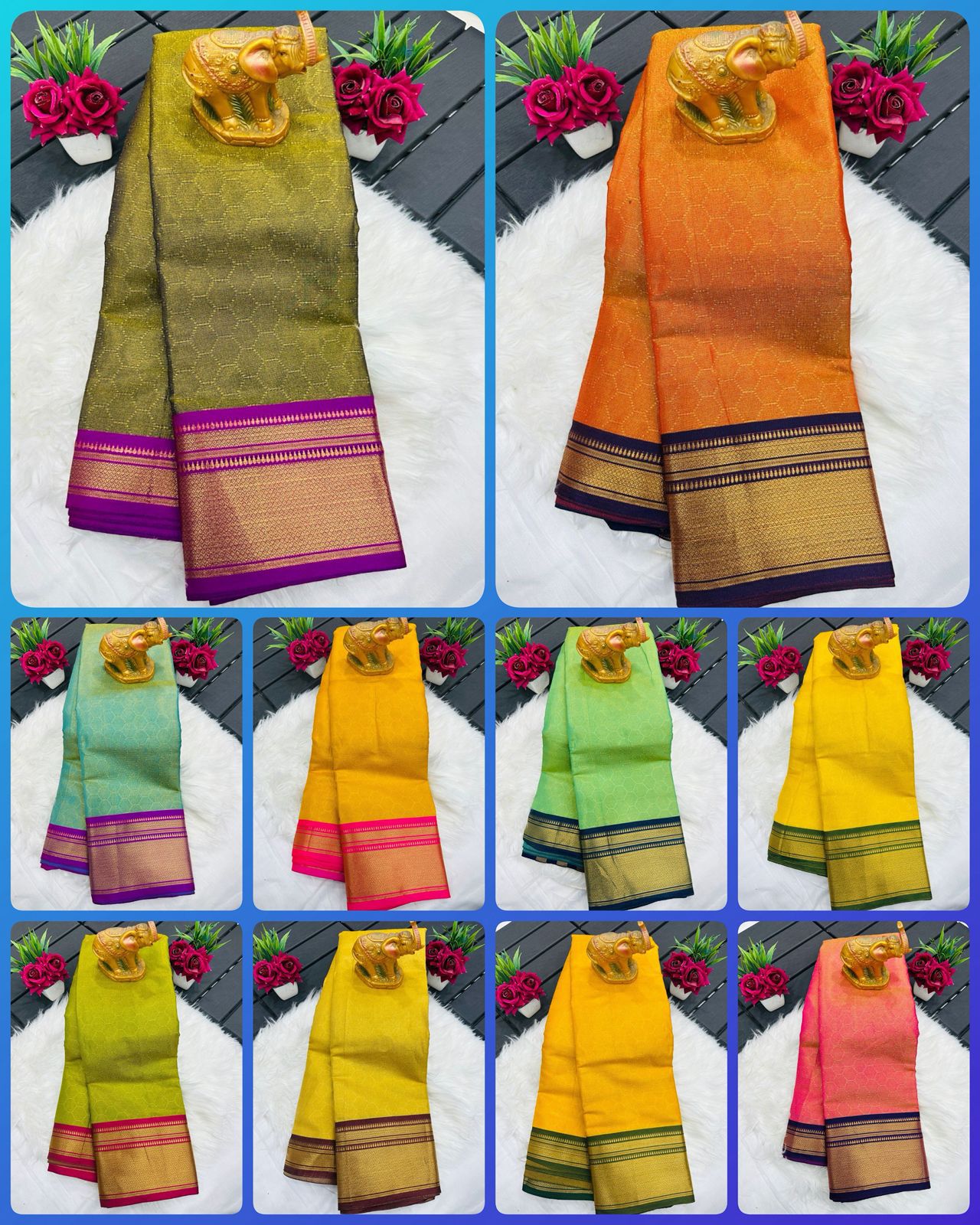 Kanchivaram Silk Saree – Pure Mercerised Silk with Exclusive Zari Checks & Contrast Blouse