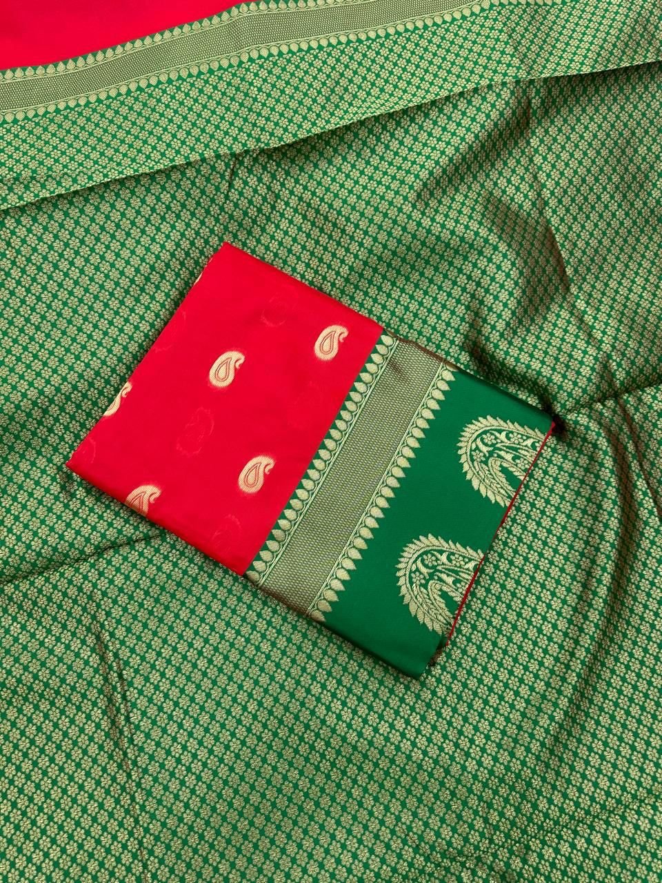 Designed for elegance, the saree comes with a contrast blouse piece featuring an exclusive jacquard border, giving you the freedom to tailor it to your perfect fit. Ideal for weddings, festive occasions, and party wear, this saree is a must-have for every woman's ethnic wardrobe.