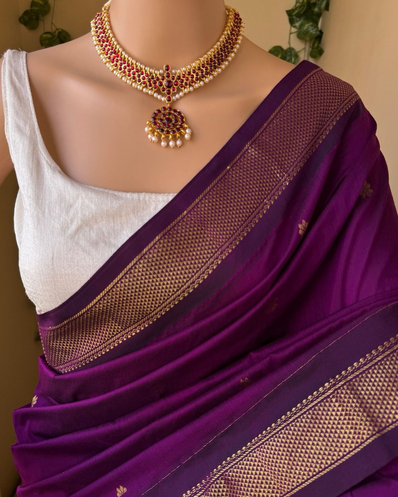 Soft Lichi Silk Art Jacquard Saree with Contrast Blouse – Wedding & Party Wear