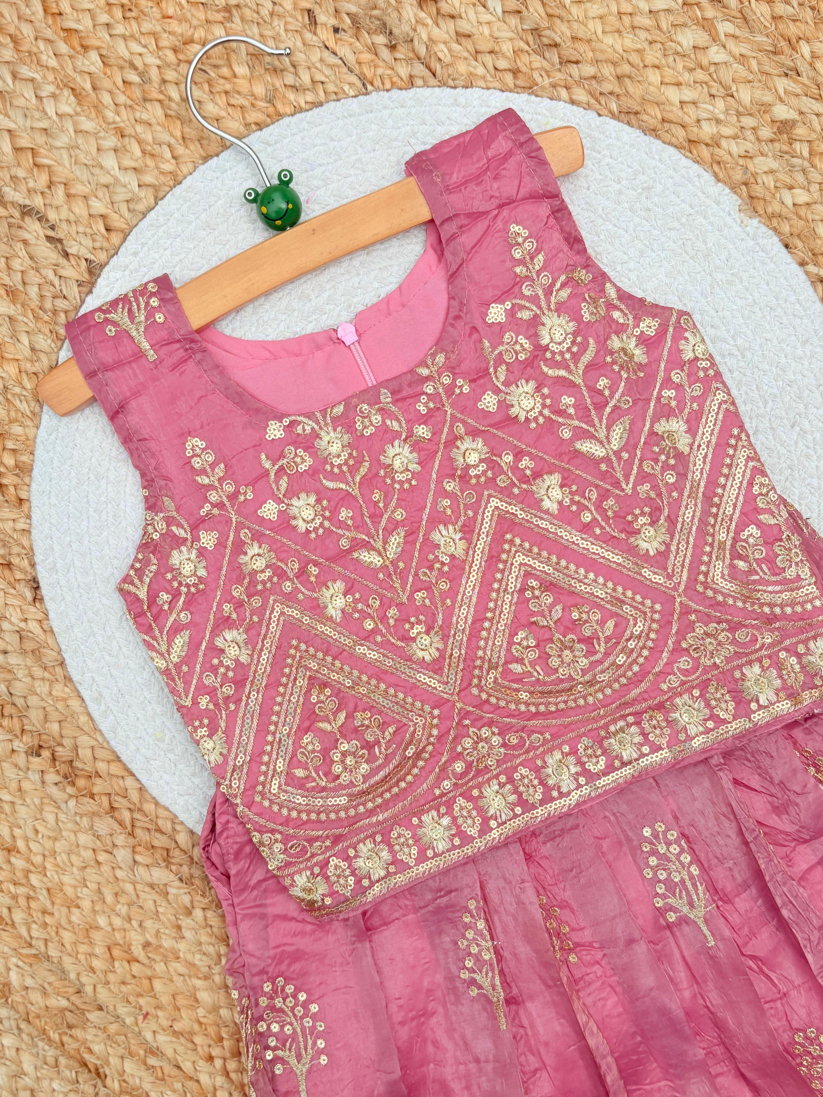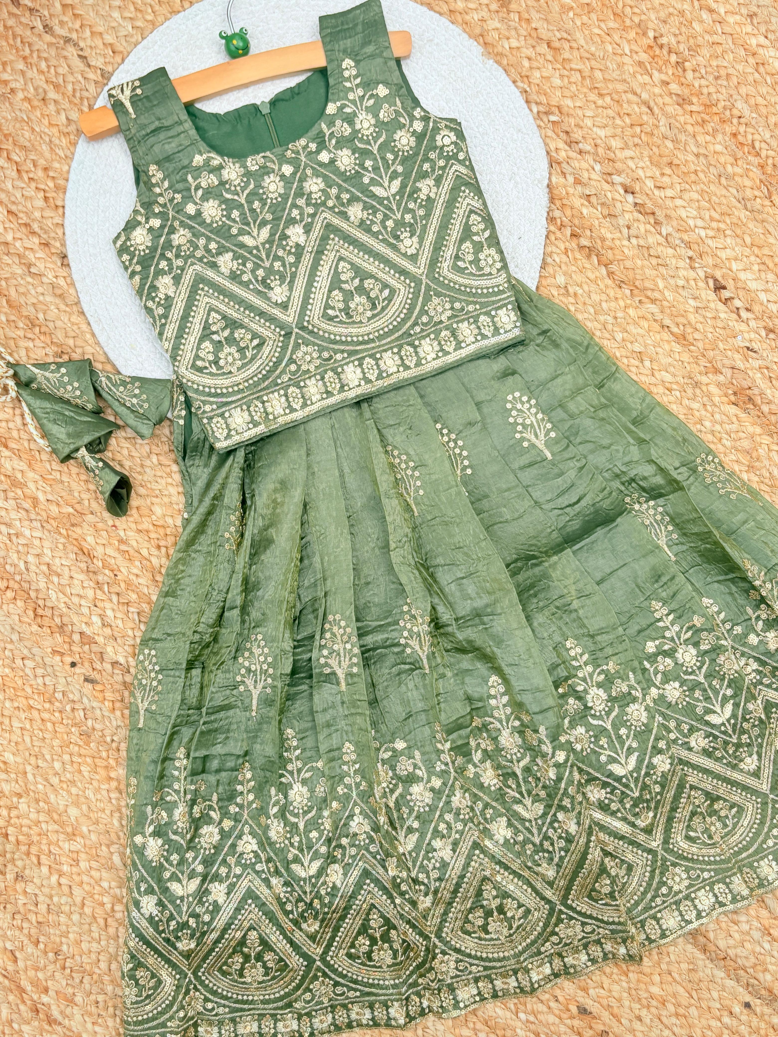 Kids Designer Lahenga Choli – Gold Crush Embroidery Work | Festive & Party Wear