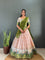 The outfit is completed with a graceful Georgette dupatta adorned with a fancy lace border, adding a sophisticated finish to the set. The 3.5-meter flair lehenga and unstitched blouse provide flexibility for a custom fit, making it ideal for festive occasions, family functions, and ethnic celebrations.