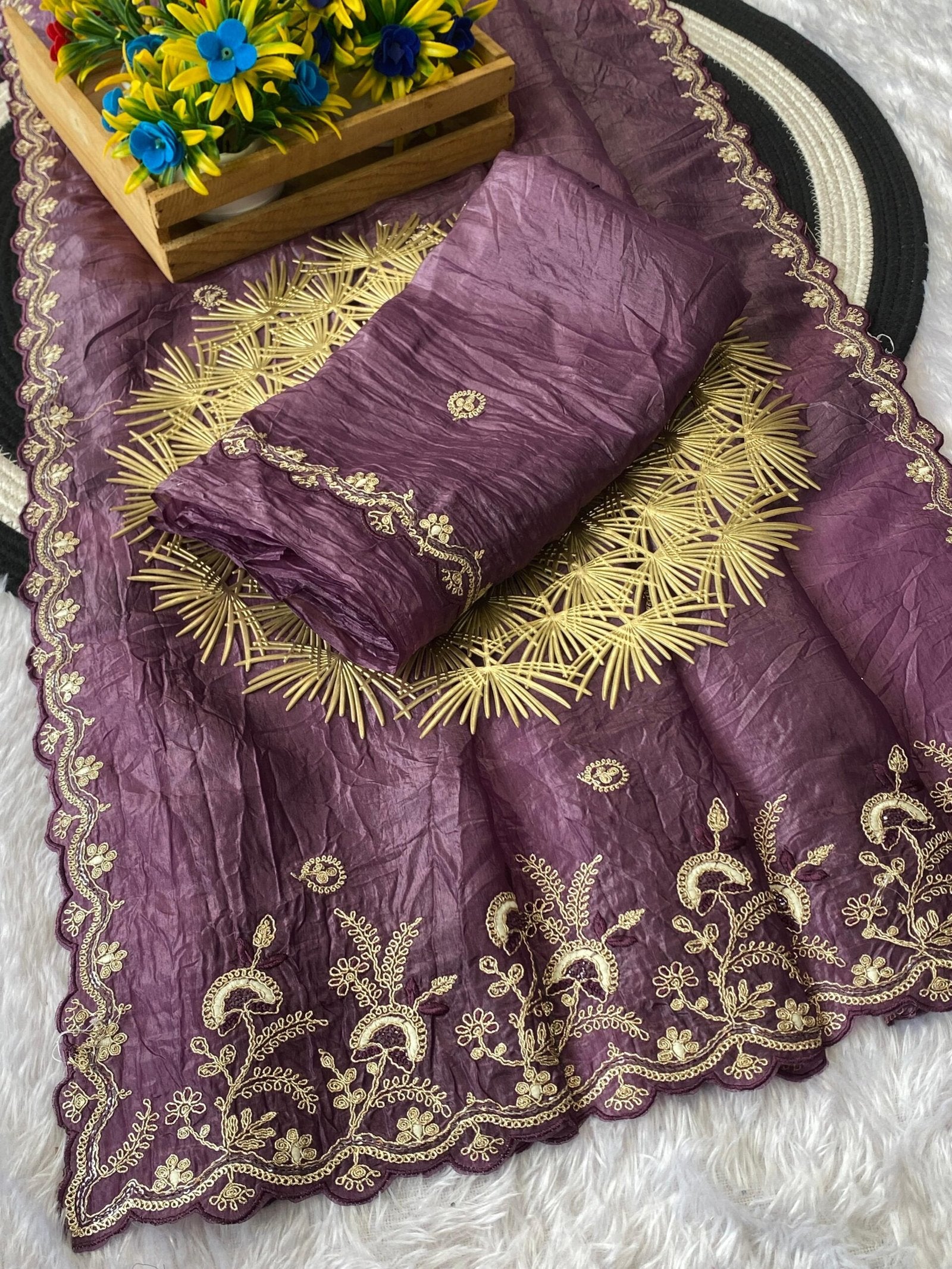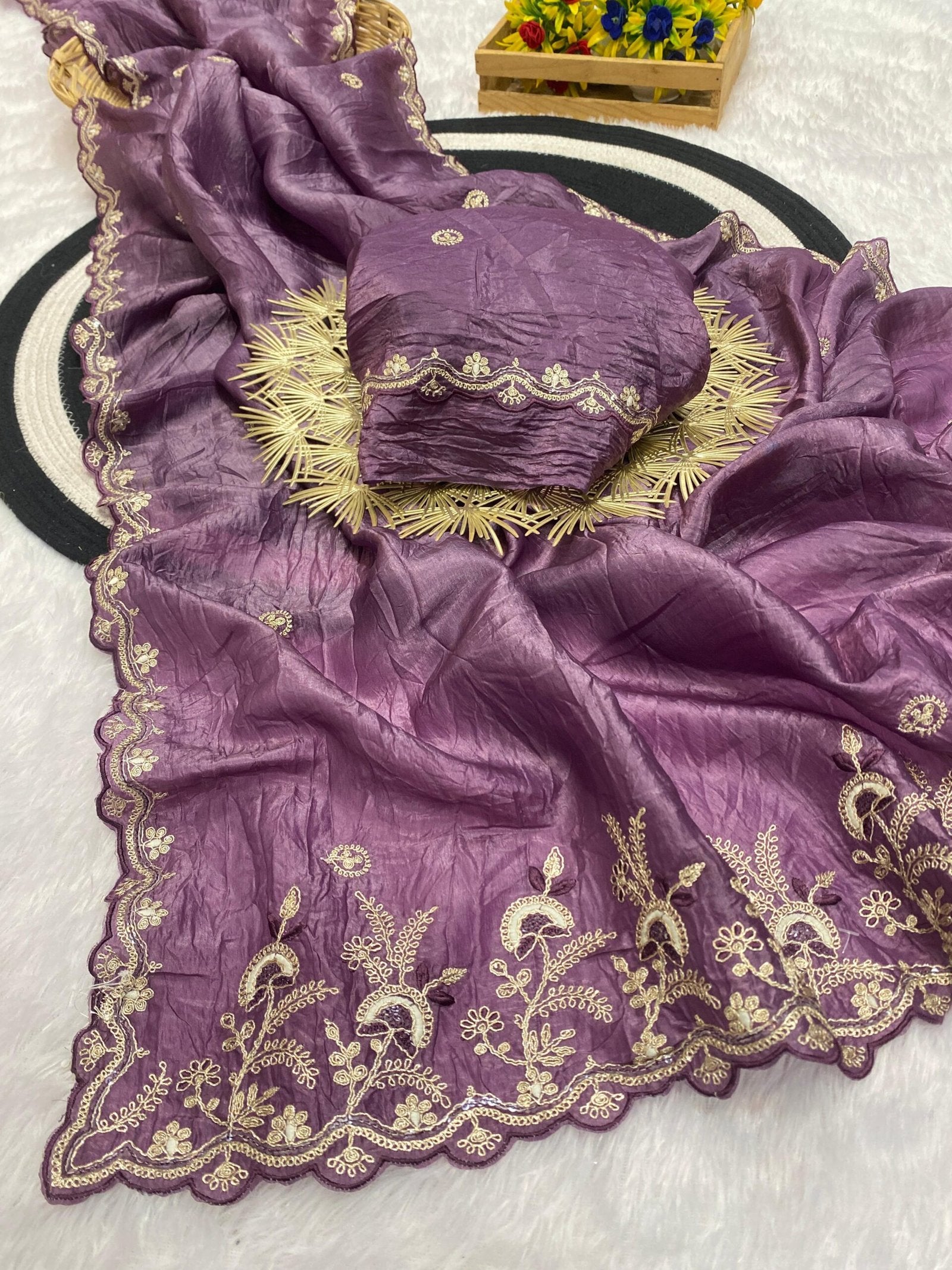 Gold Crush Designer Saree with Silver Embroidery & Sequin Work | Embroidered Blouse | Premium Ethnic Wear