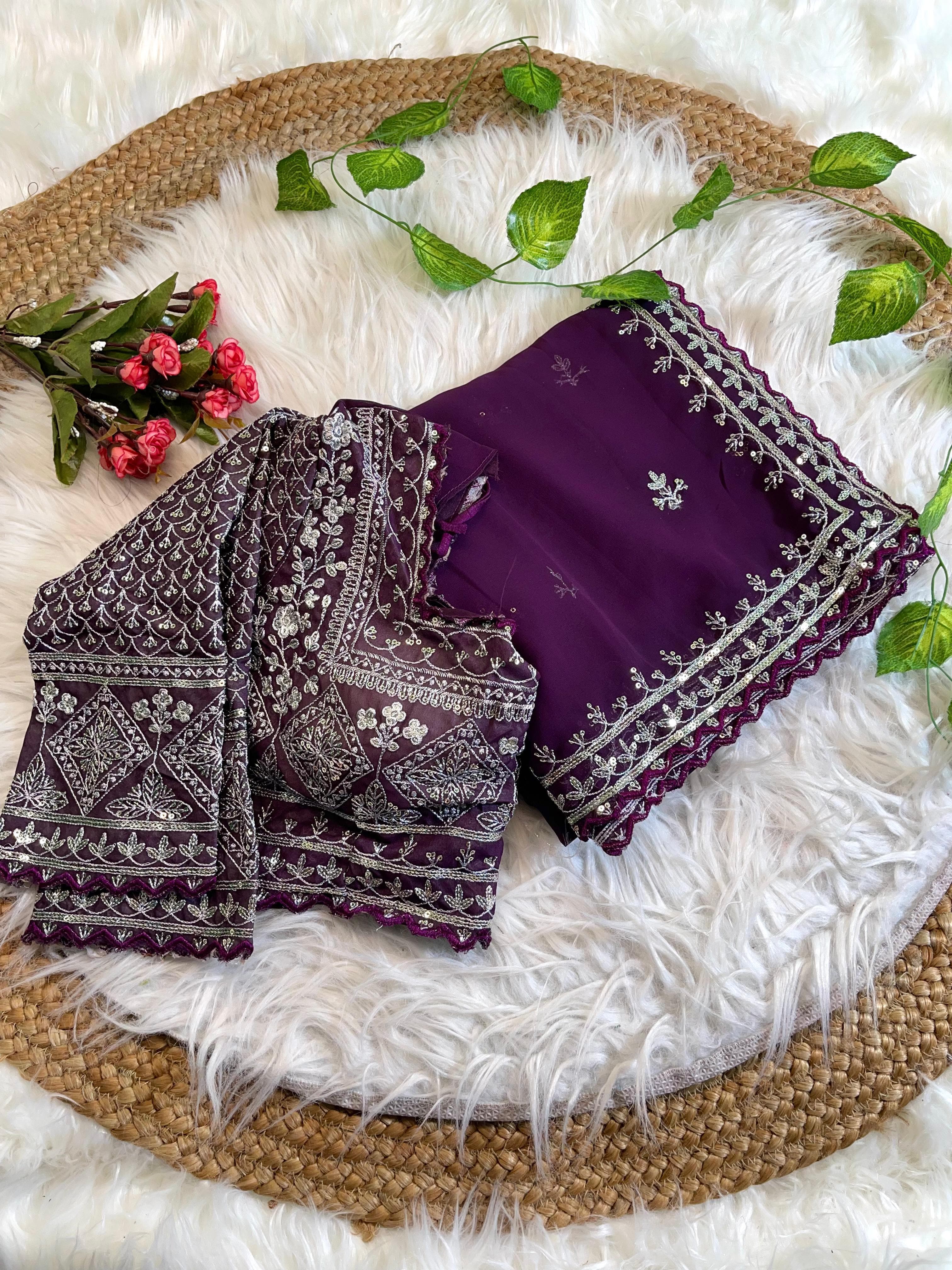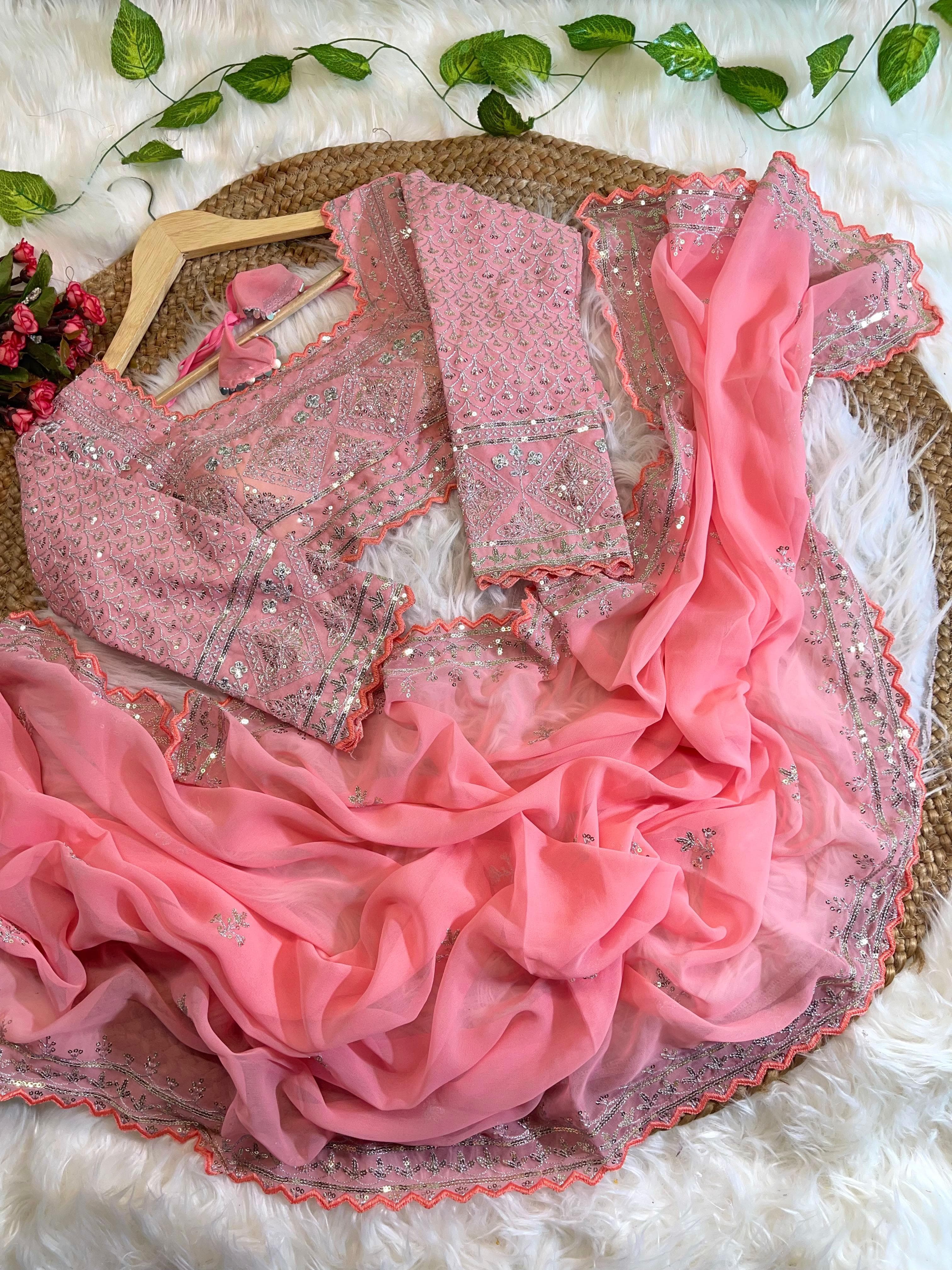 Pure Soft Fox Georgette Saree with Embroidery & Sequins Border