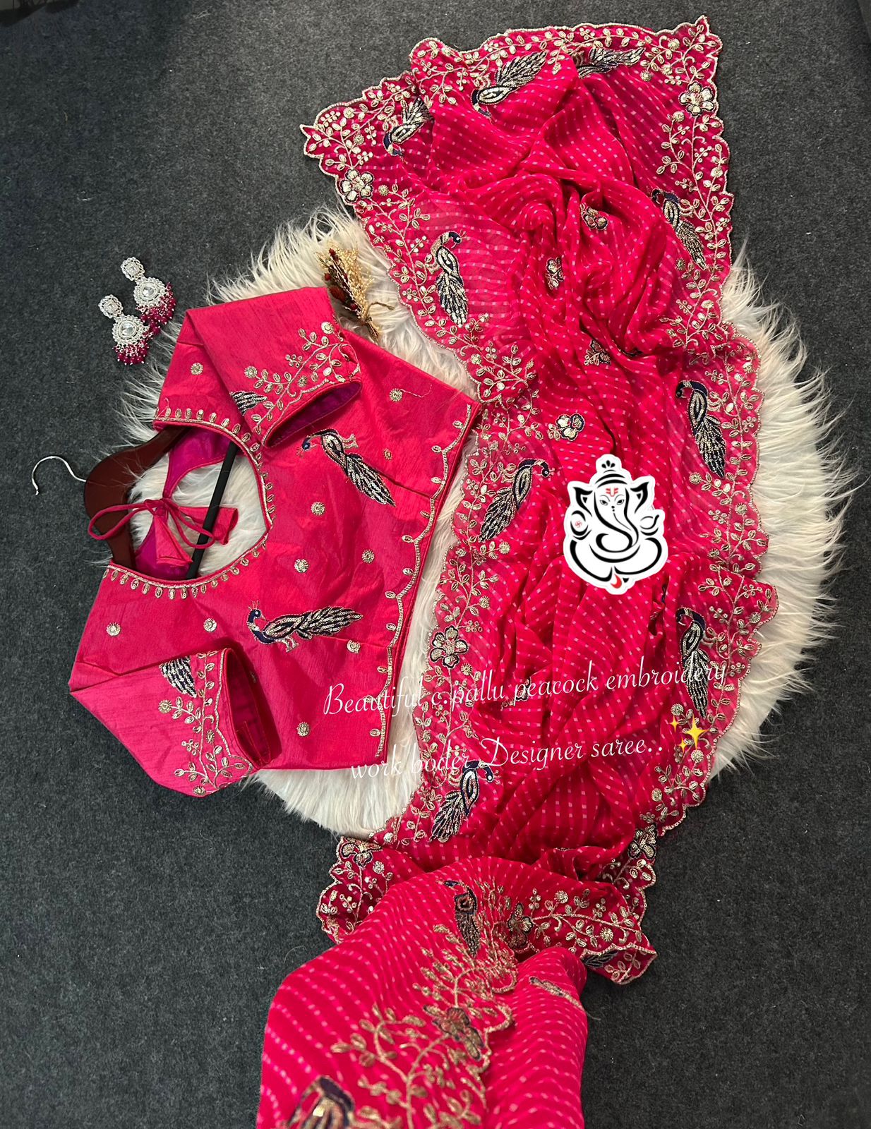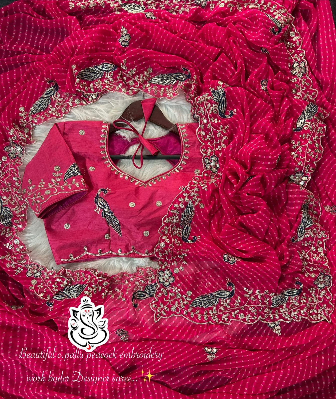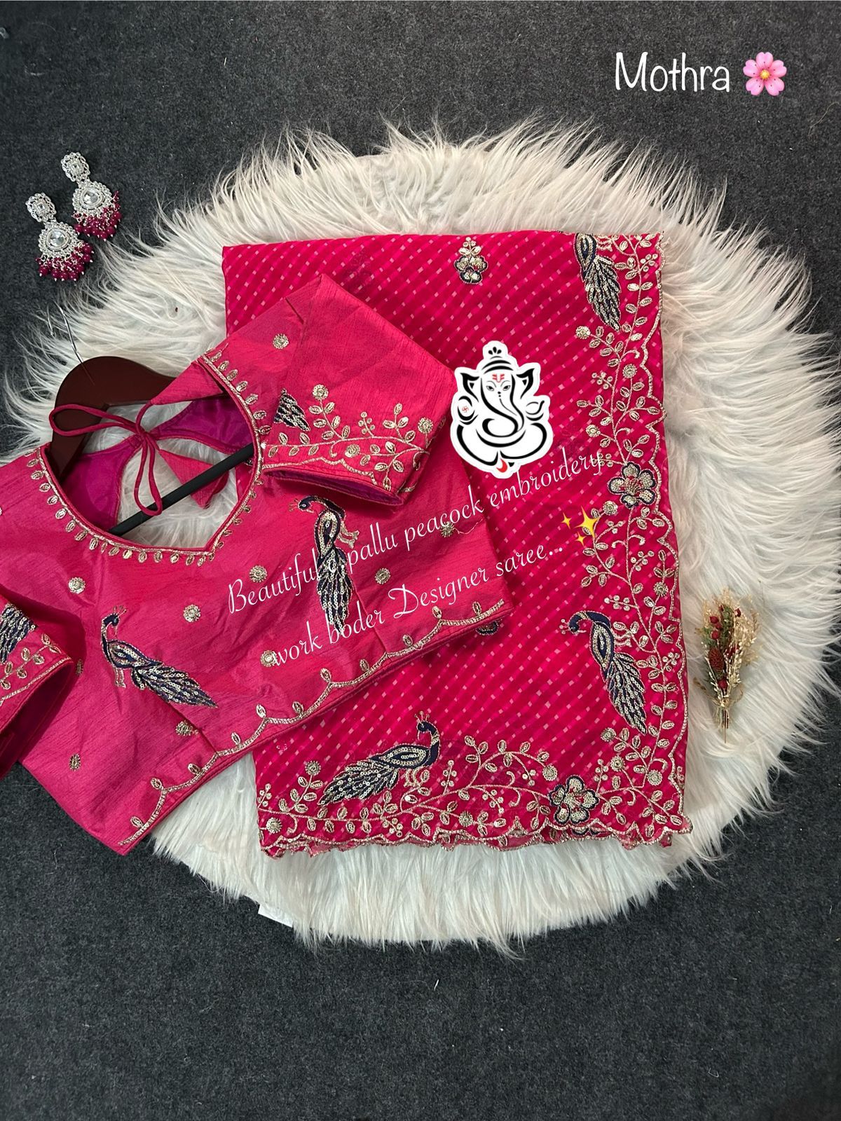 Rani Color Premium Mothra Georgette Saree with Designer Stitched Blouse