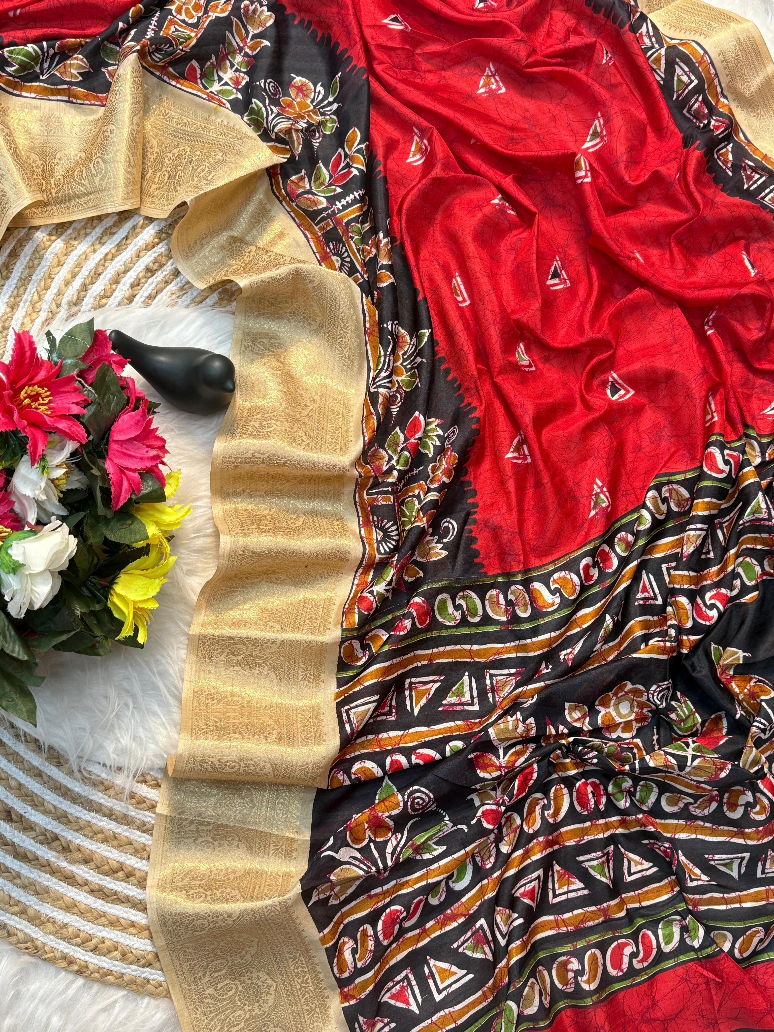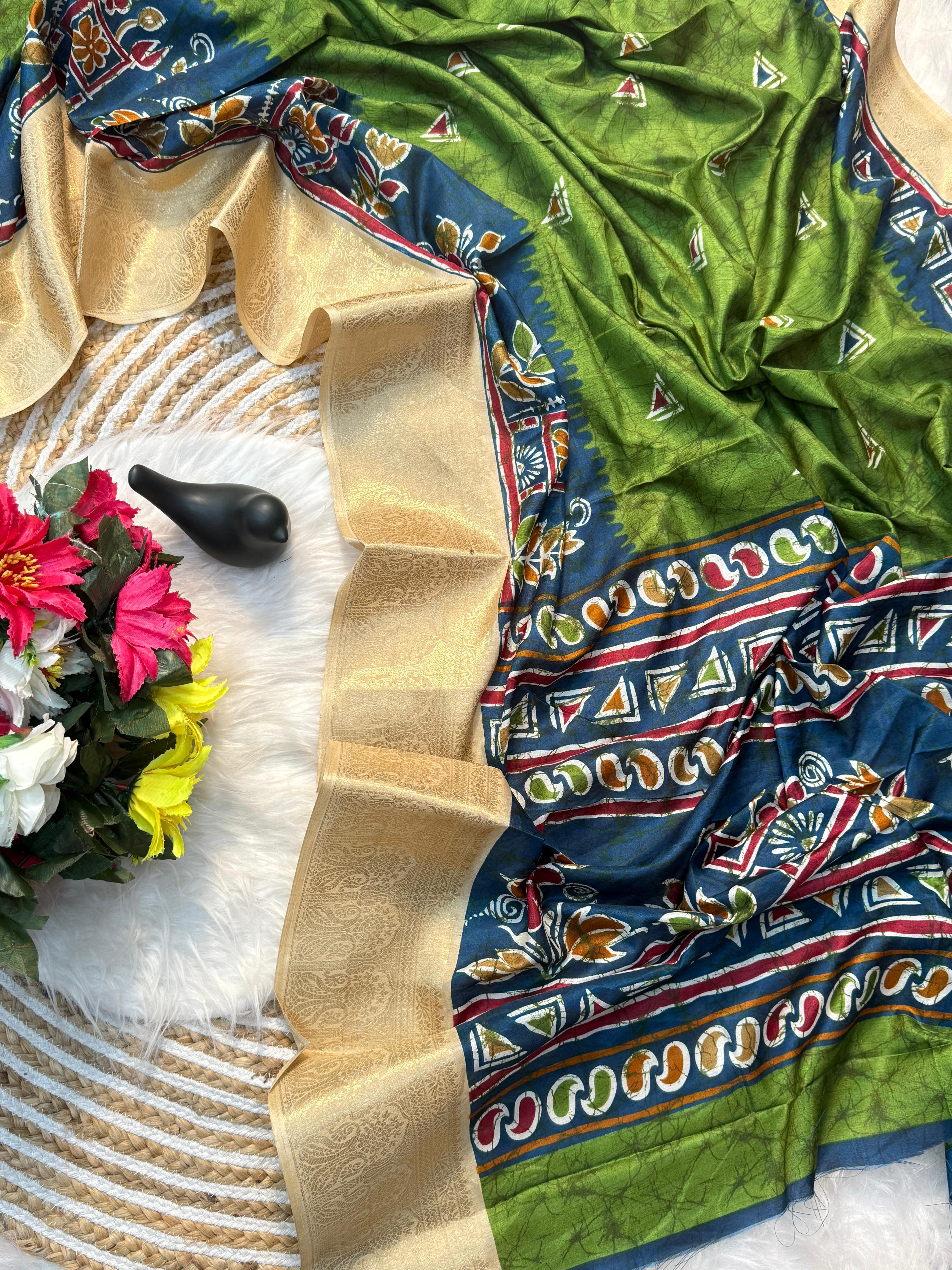 Ajarakha Prisam Dola Silk Saree with Jacquard Border | Super Soft Fabric | Traditional Elegance