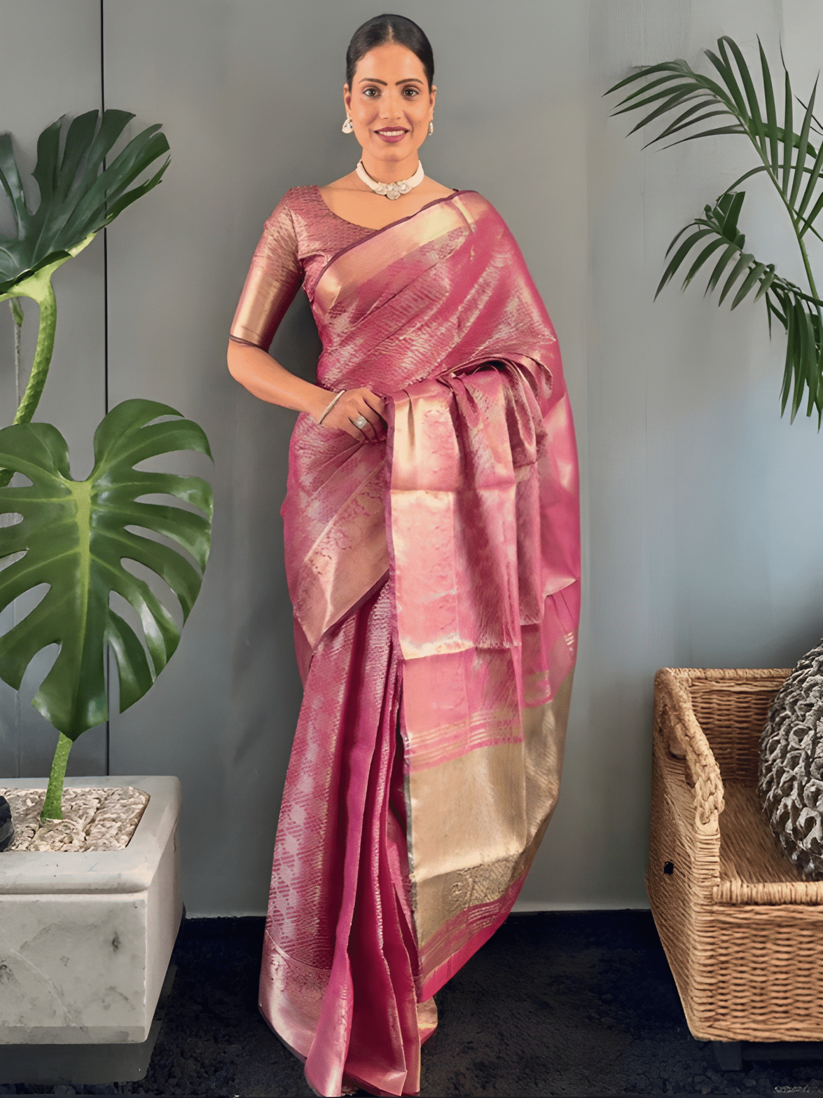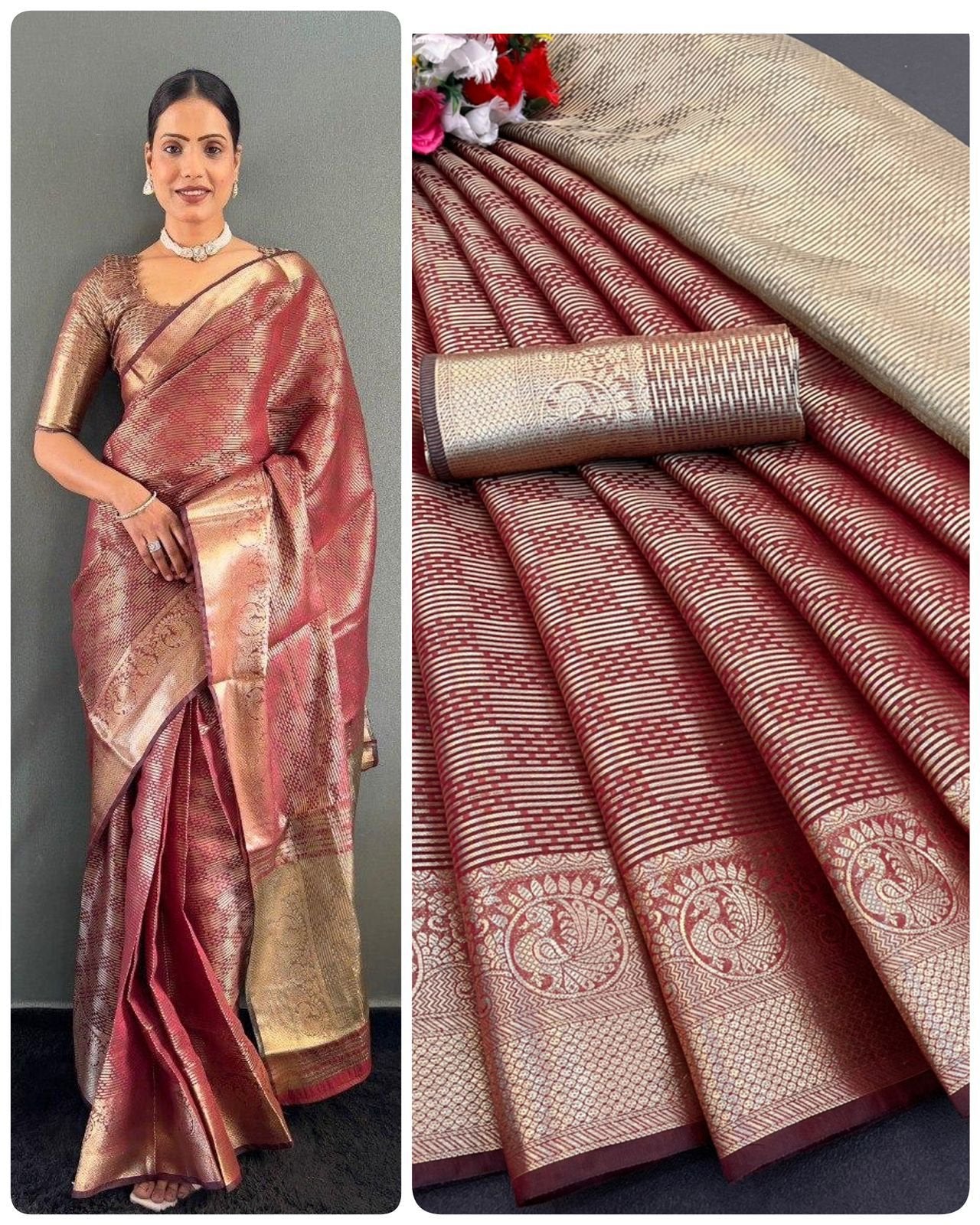- Saree Name: Copper Tissue Silk Kanchi Border Saree