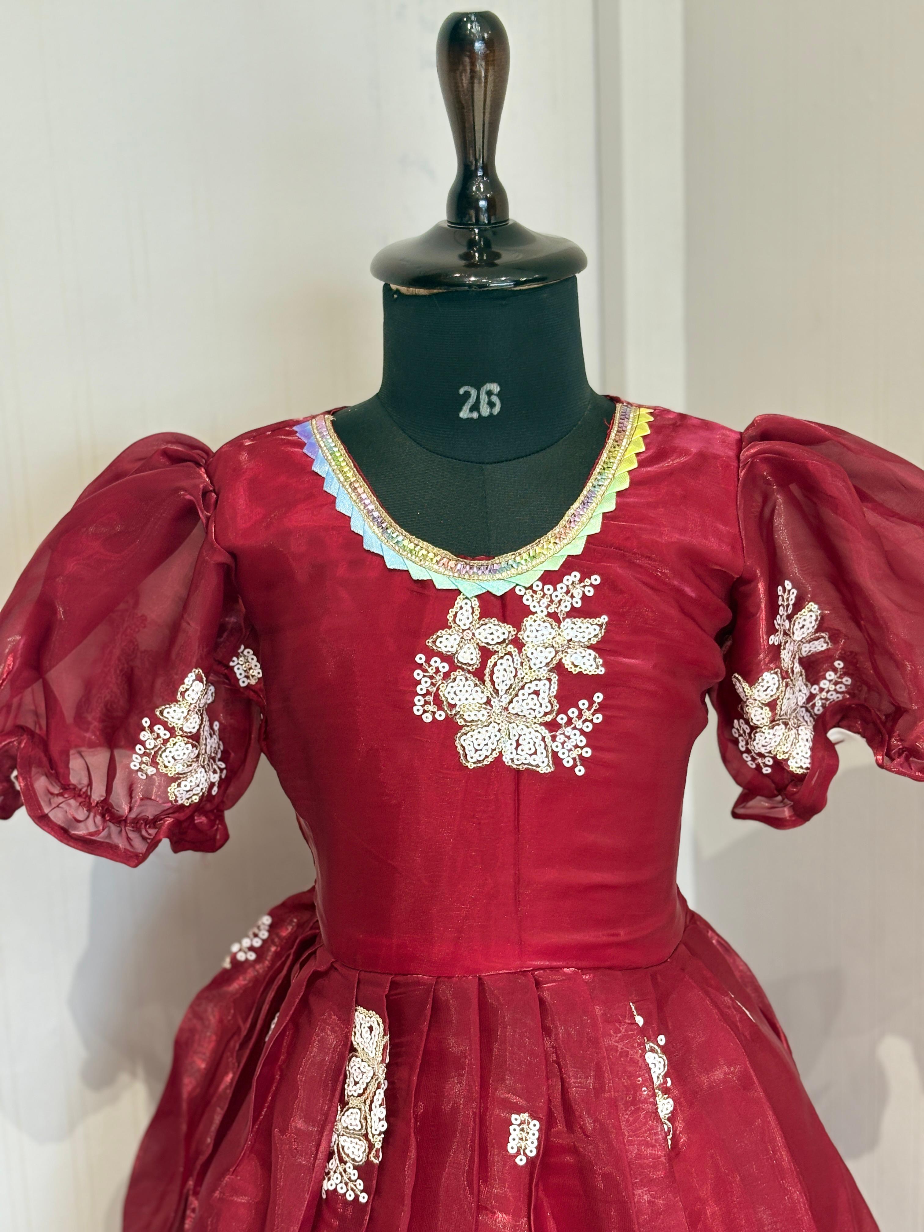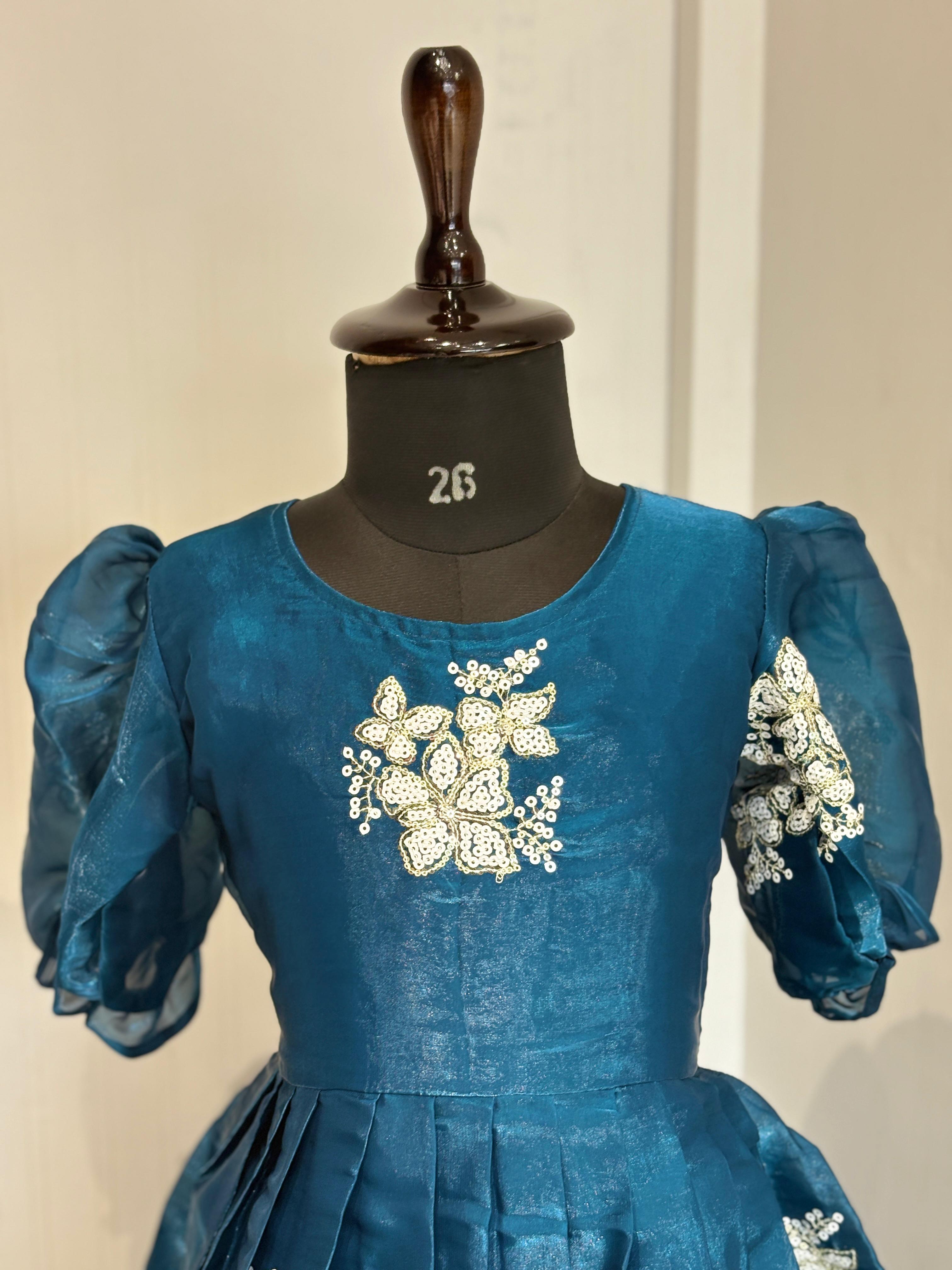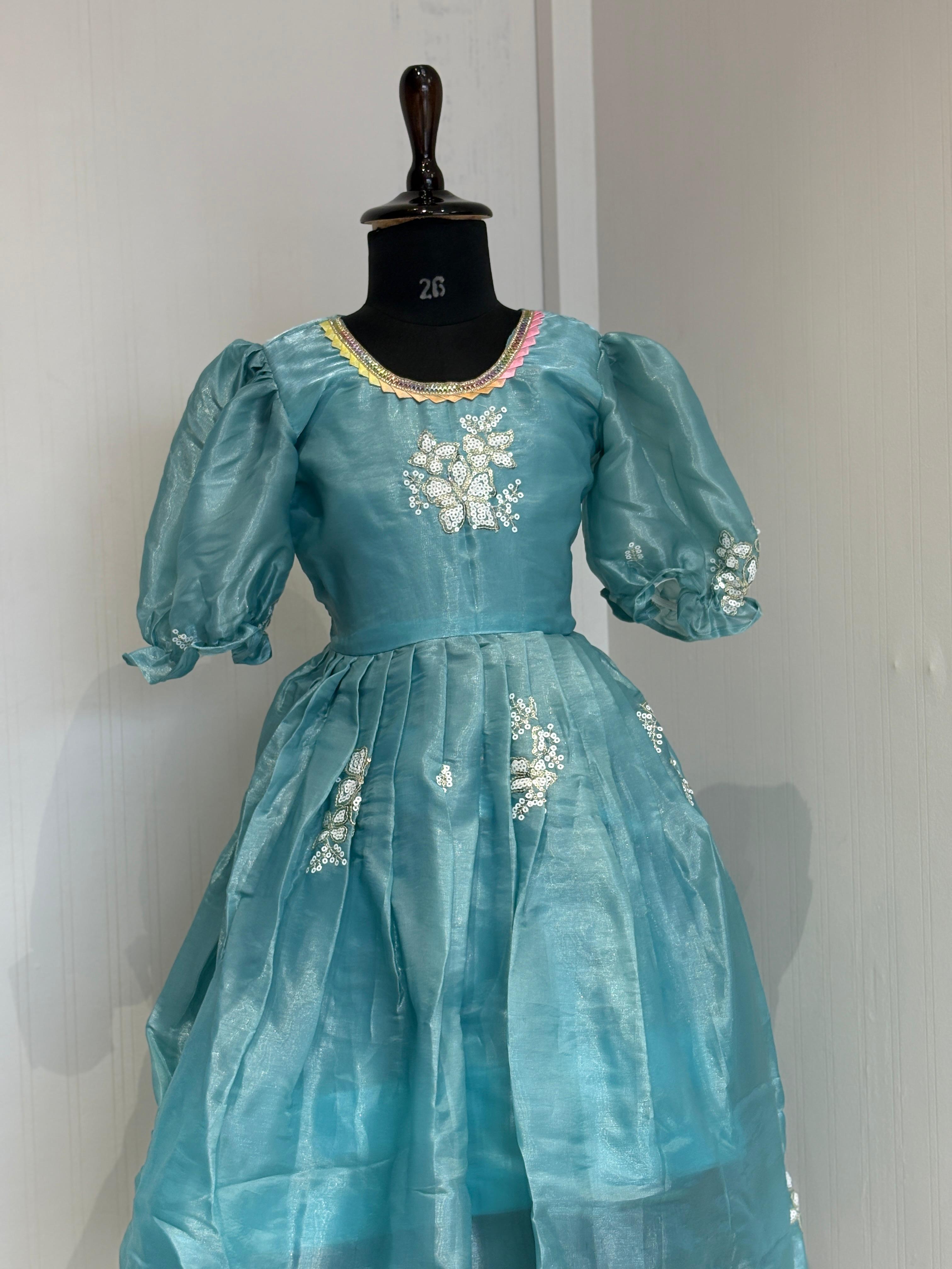 Kids Designer Gown – Kesar Collection | Sequence Butta Work | Festive & Party Wear