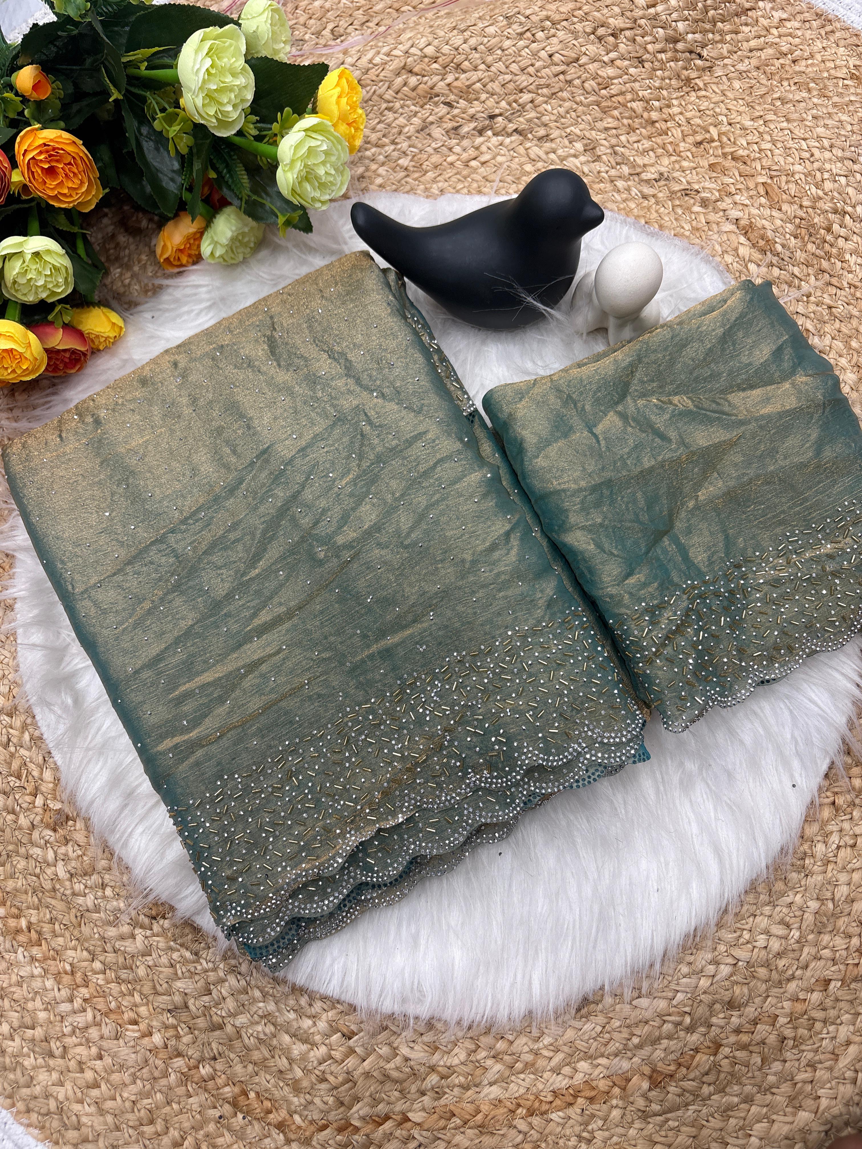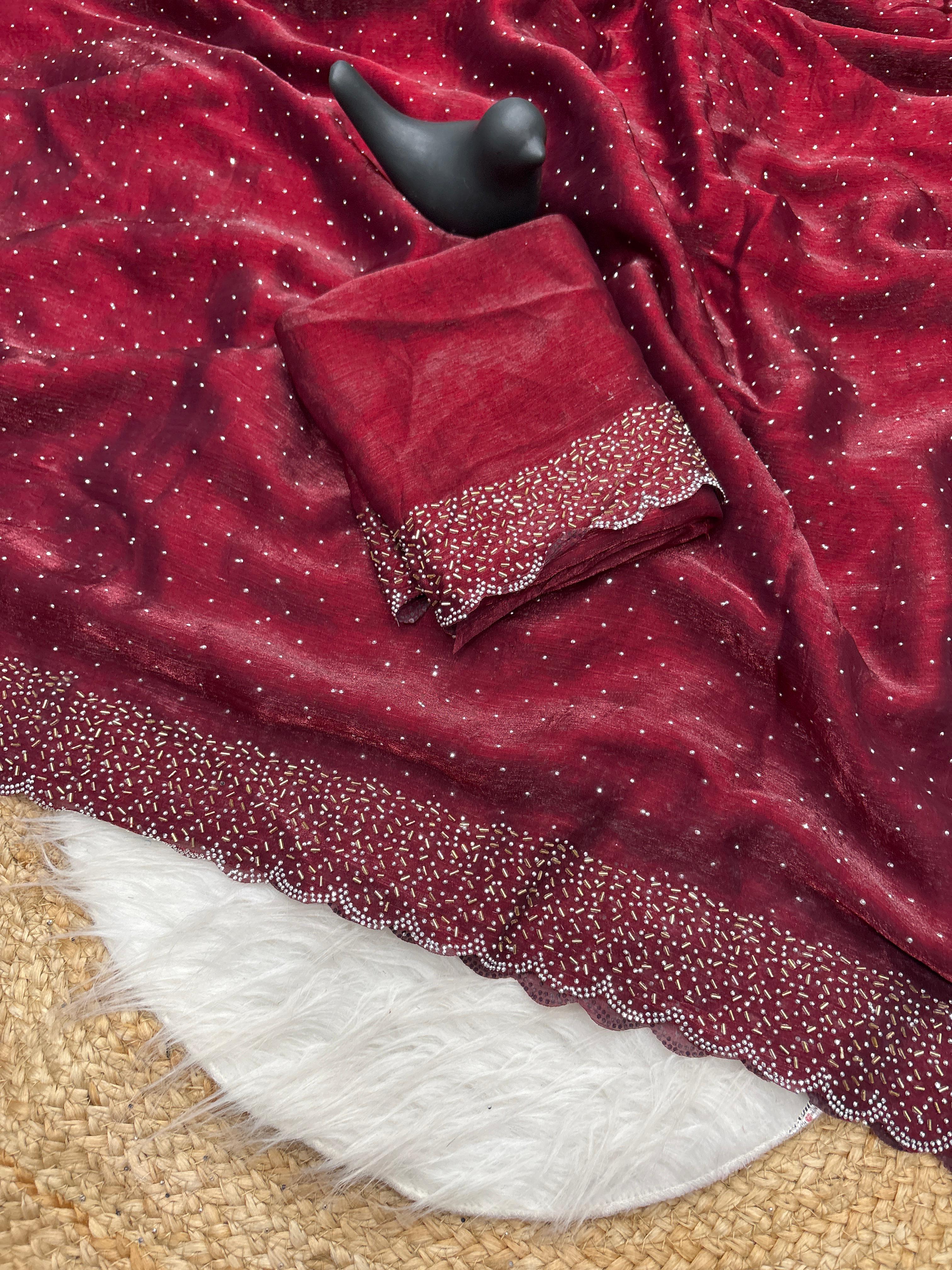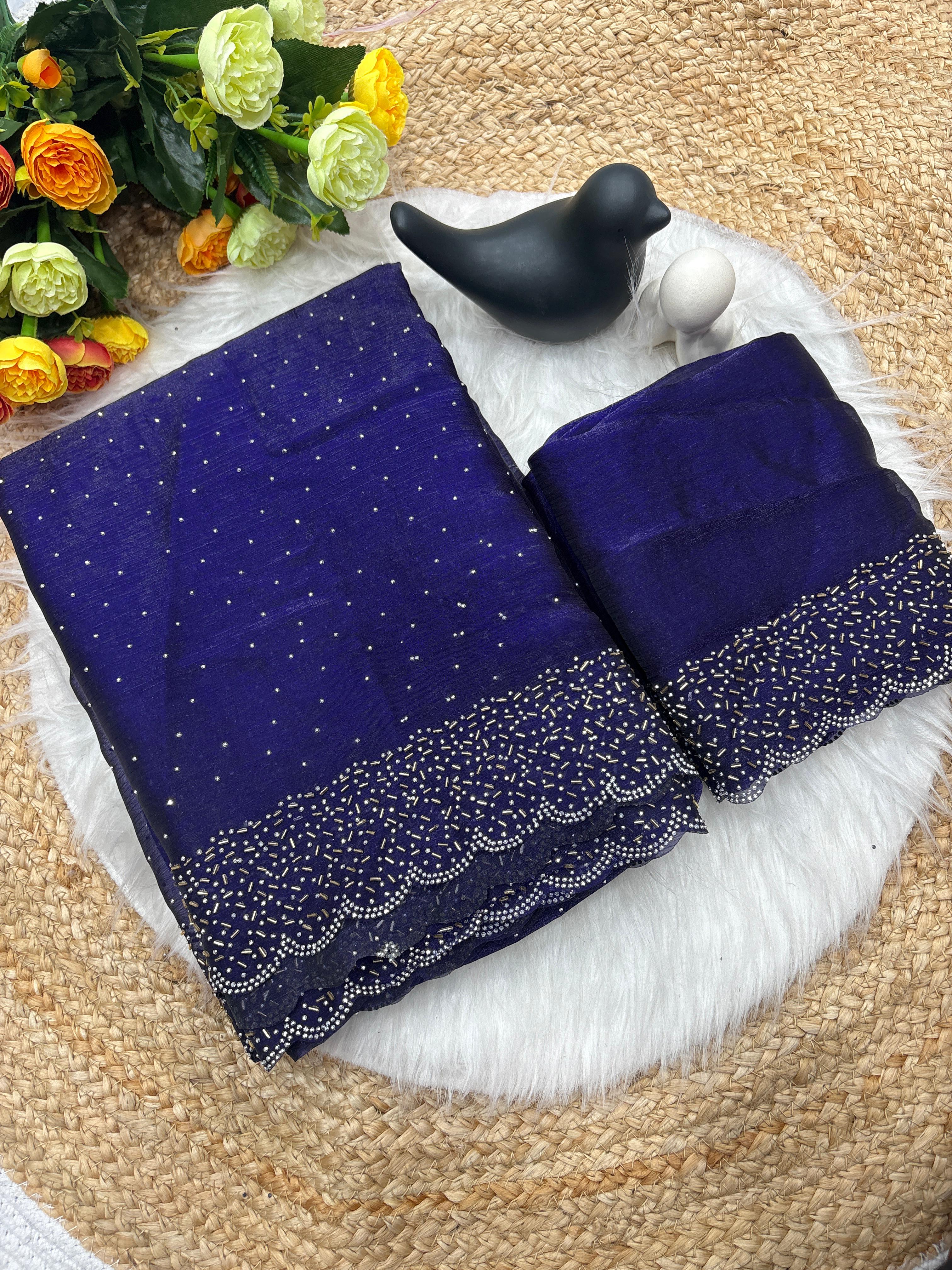Tamanah Spacec Silk Saree with Zarkhad Diamond Work & Fancy Chiffon Blouse | Party & Wedding Wear