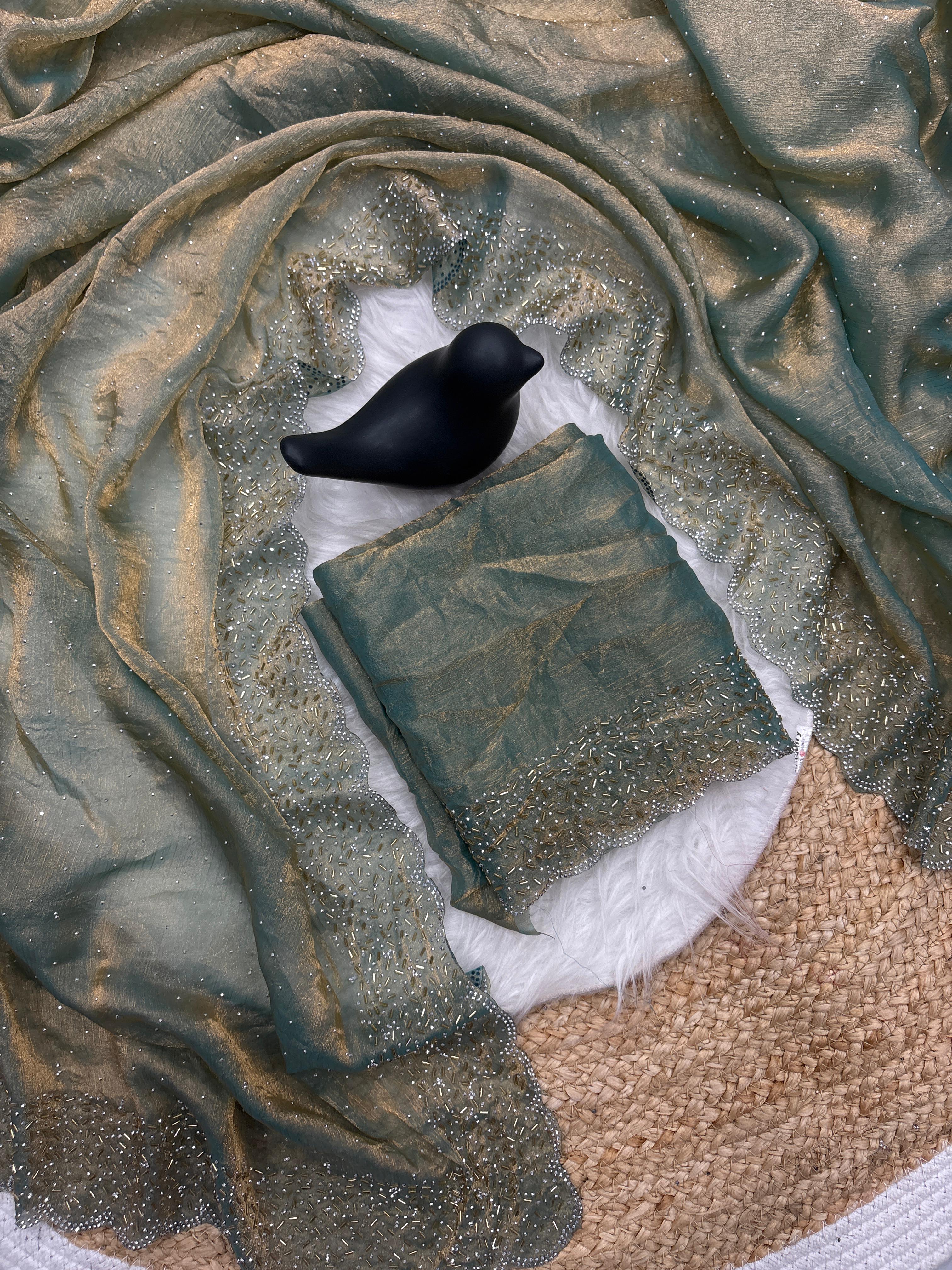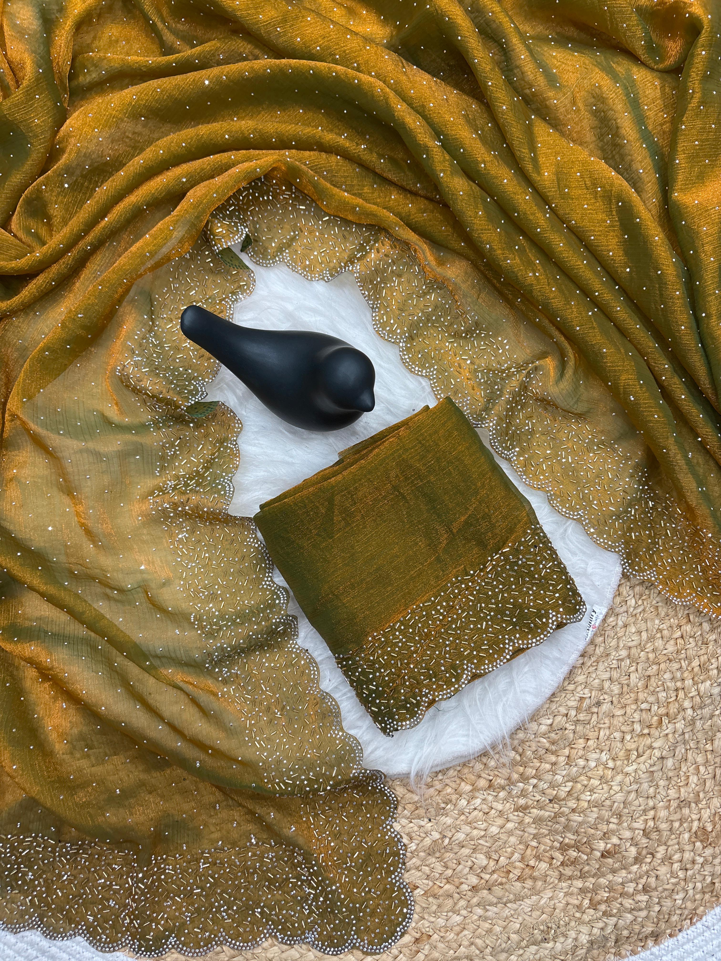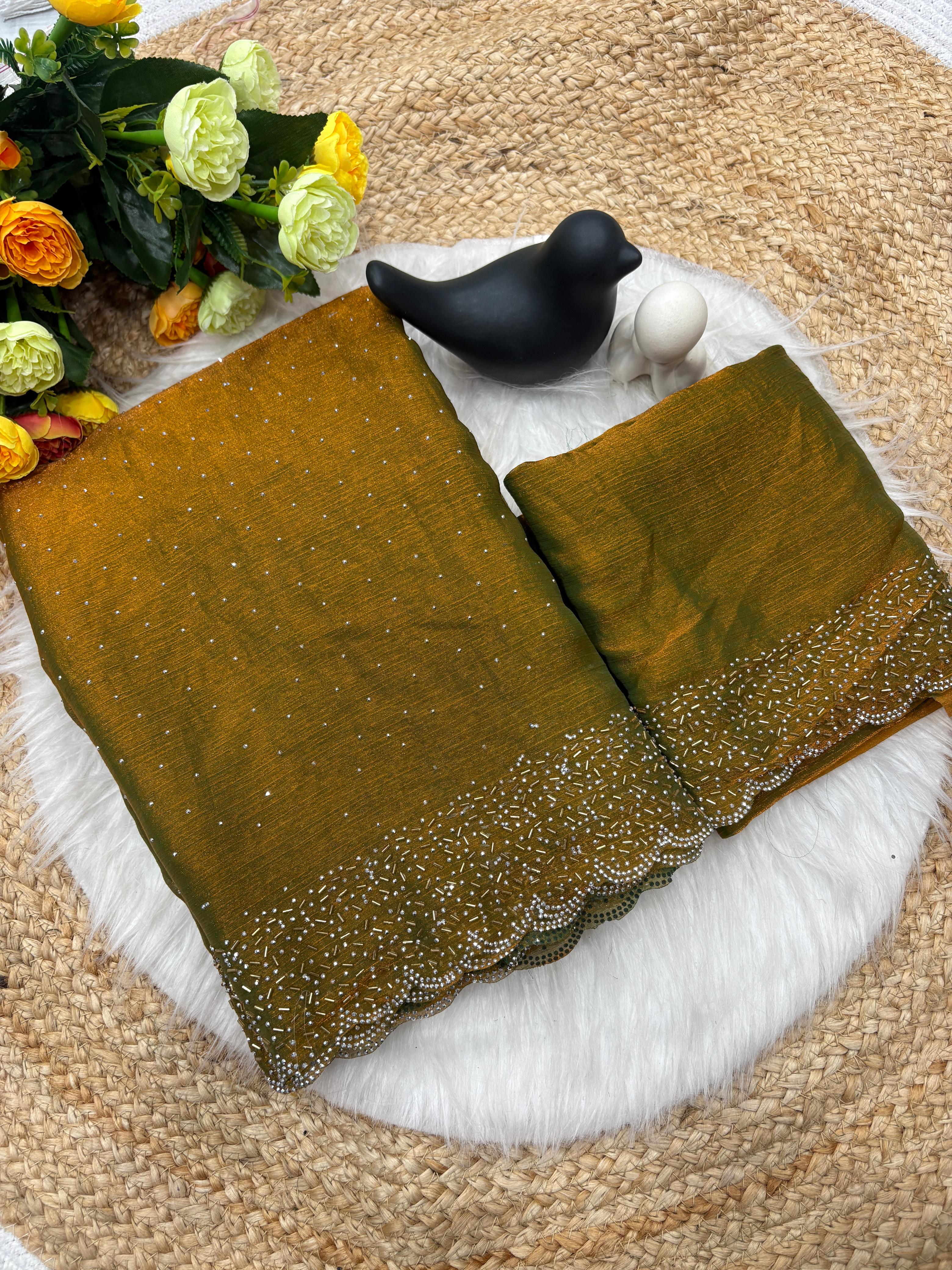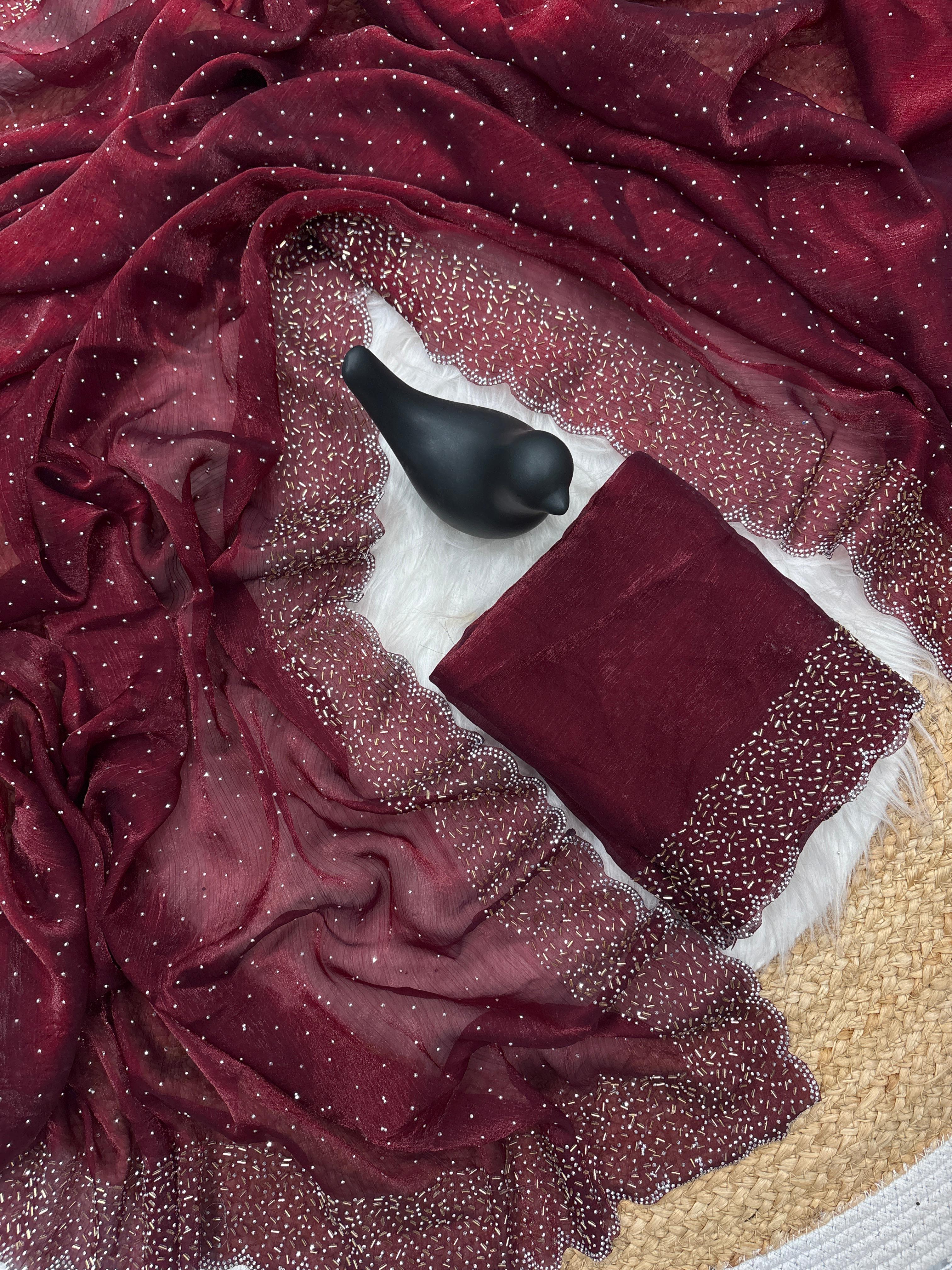 Tamanah Spacec Silk Saree with Zarkhad Diamond Work & Fancy Chiffon Blouse | Party & Wedding Wear